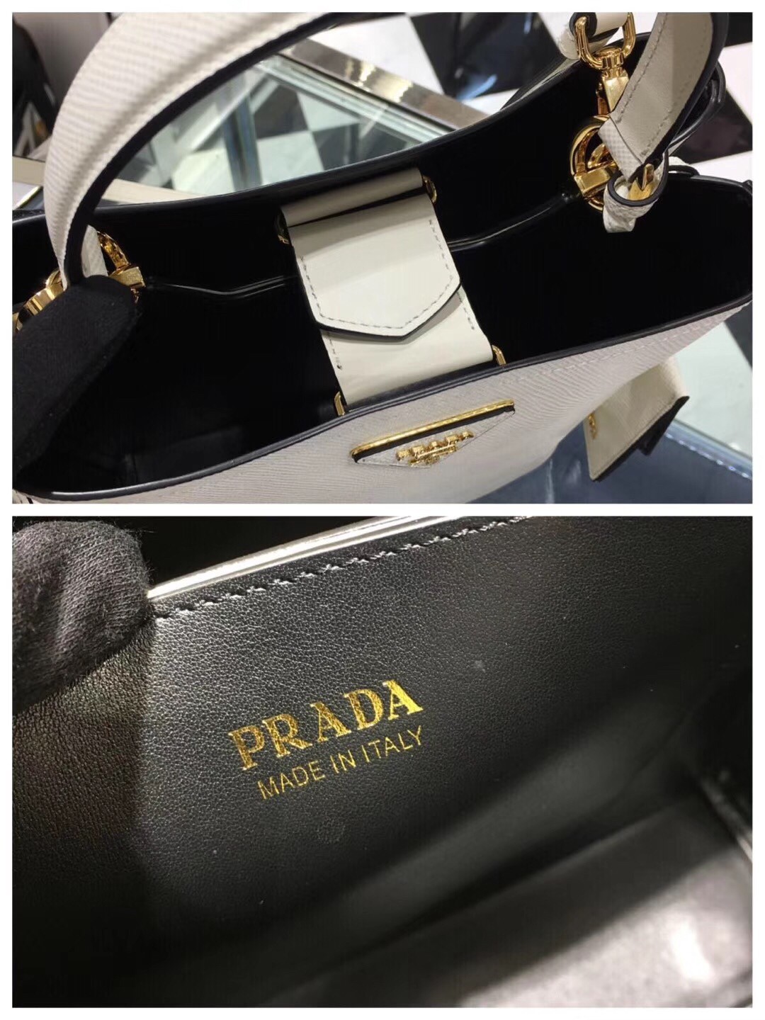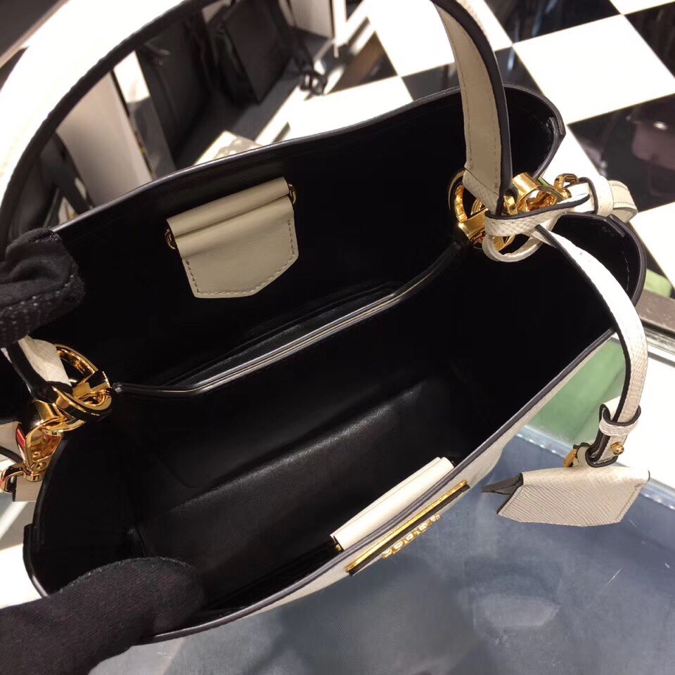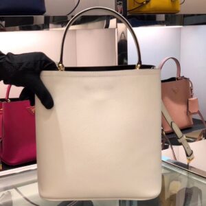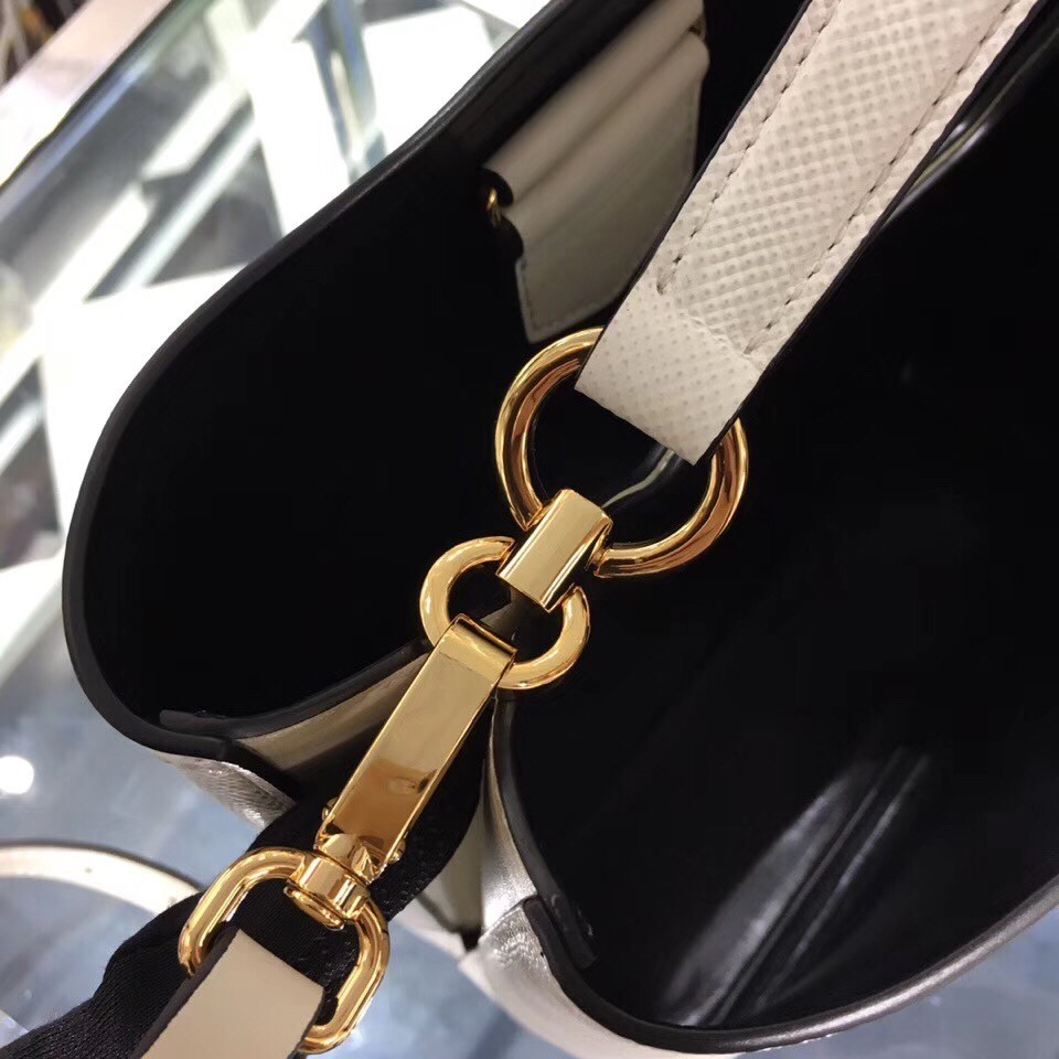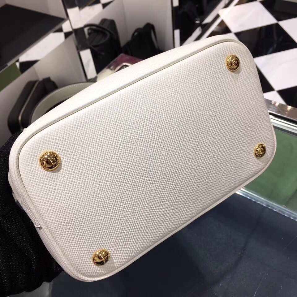 Prada White Saffiano North South Double Medium Bag