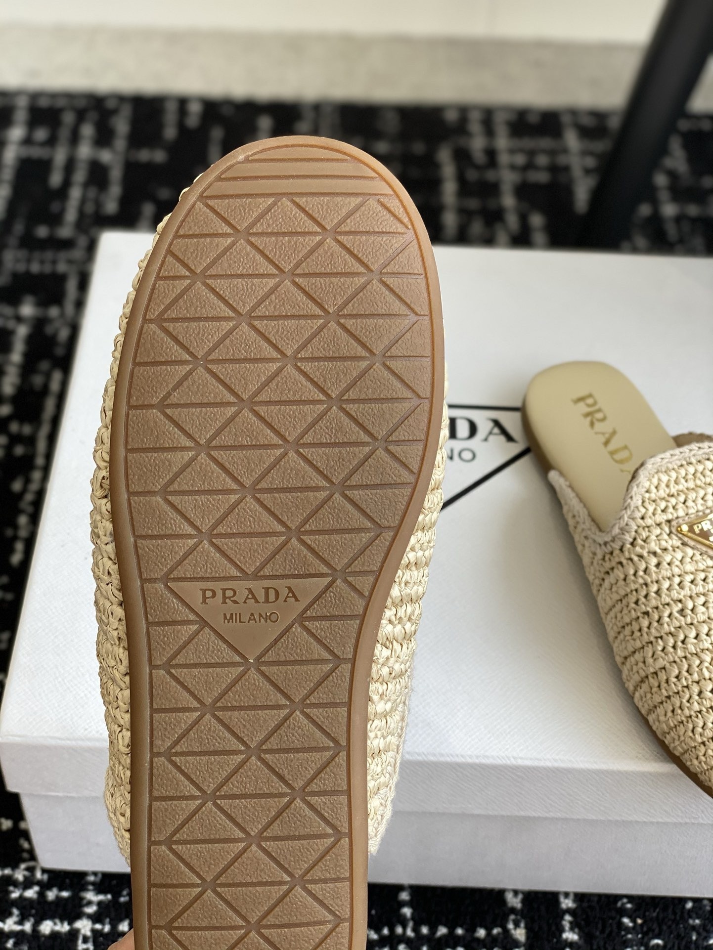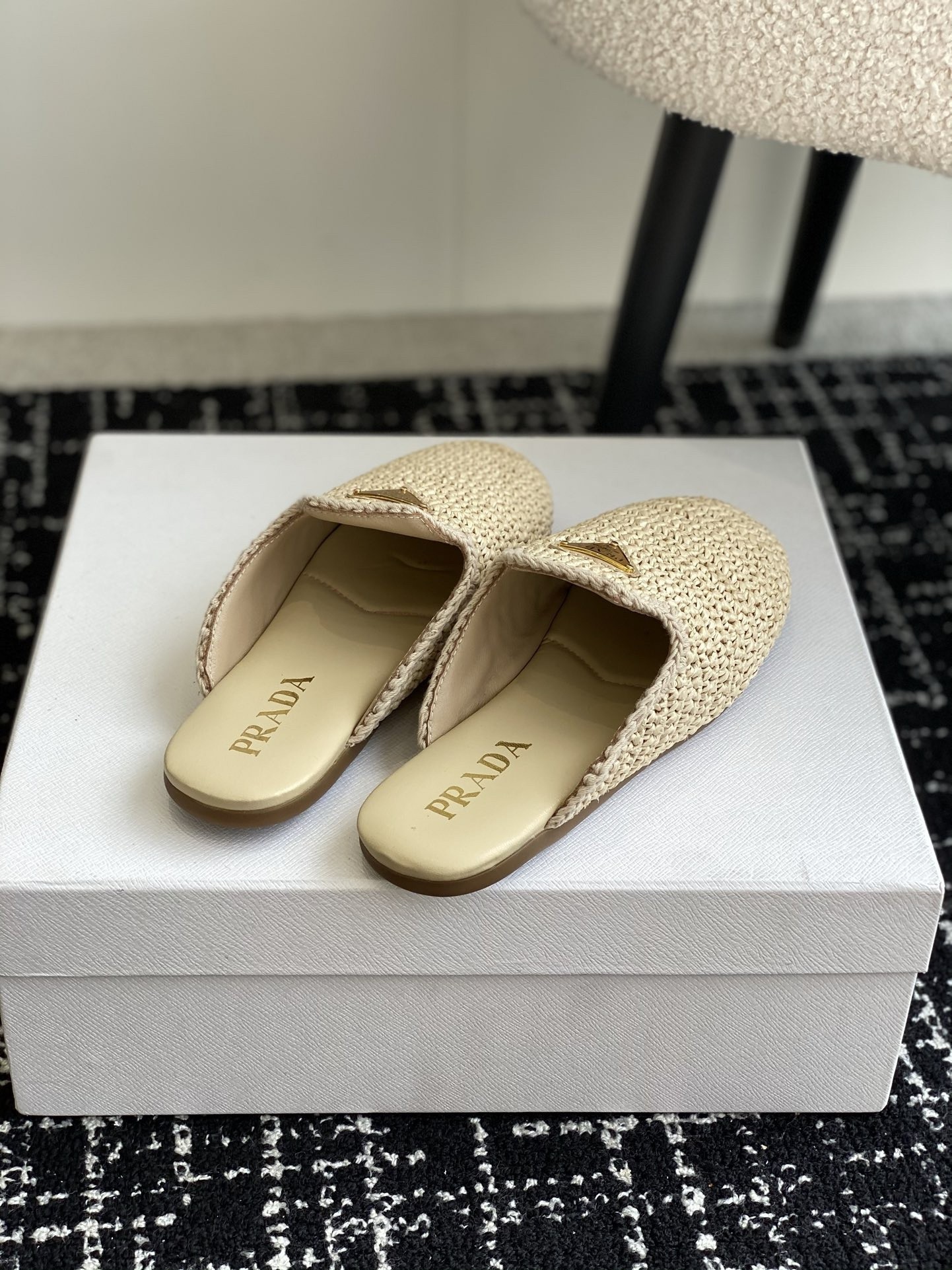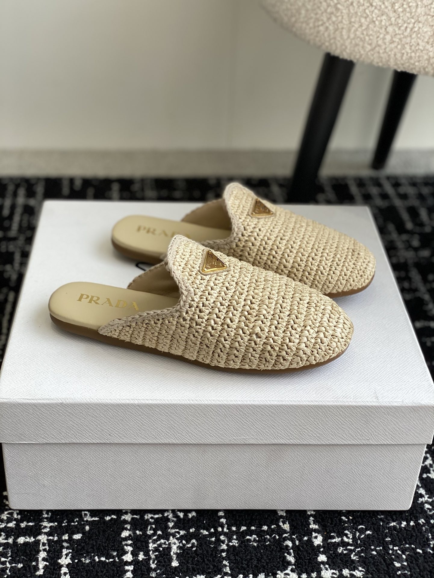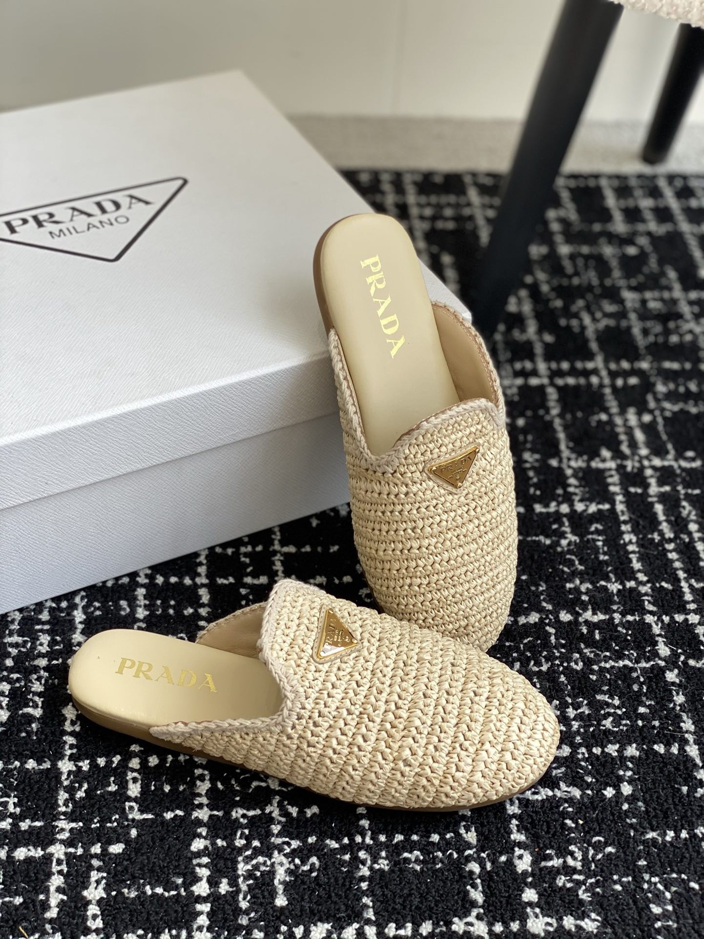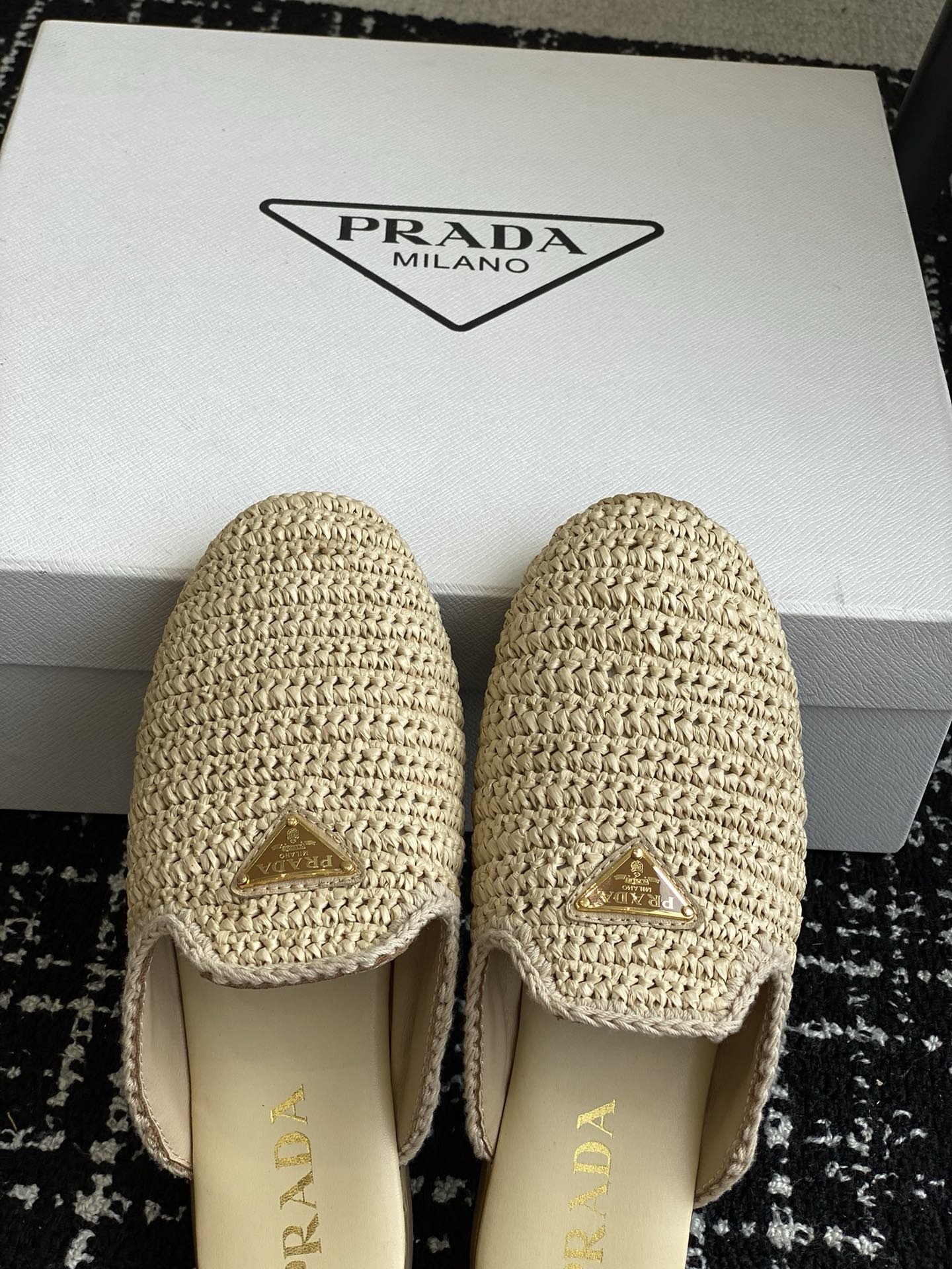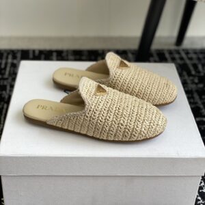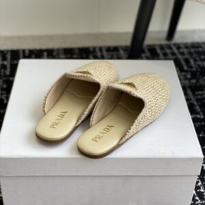 Prada Women’s Crochet Mules in Natural Raffia