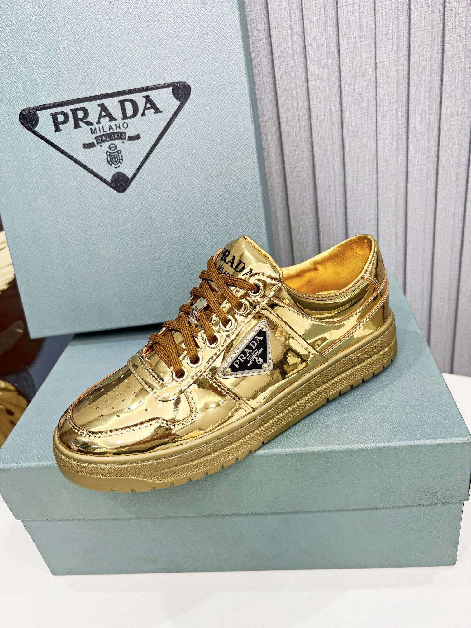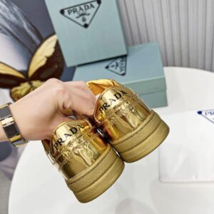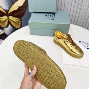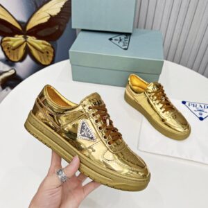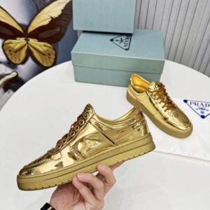 Prada Women’s Downtown Sneakers In Gold Metallic Leather
