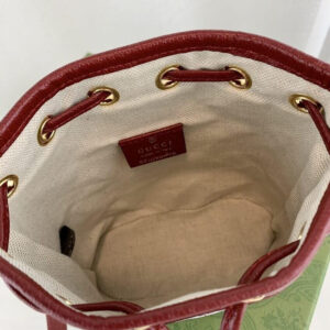 This mini bucket bag is part of a special collaboration between Doraemon and Gucci. Born on September 3rd, 2112, a cat-type robot was sent from the 22nd century to help a young boy called Nobita with secret gadgets from his four-dimensional pouch. A playful character, Doraemon hates mice and loves Dorayaki, a sweet pancake.