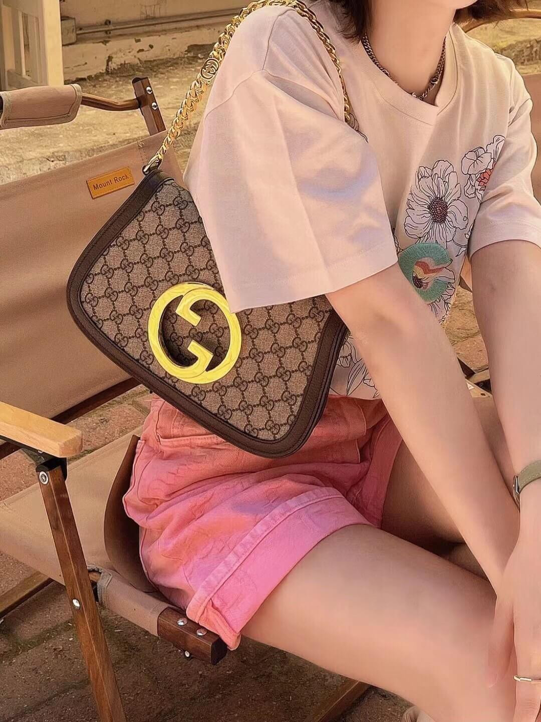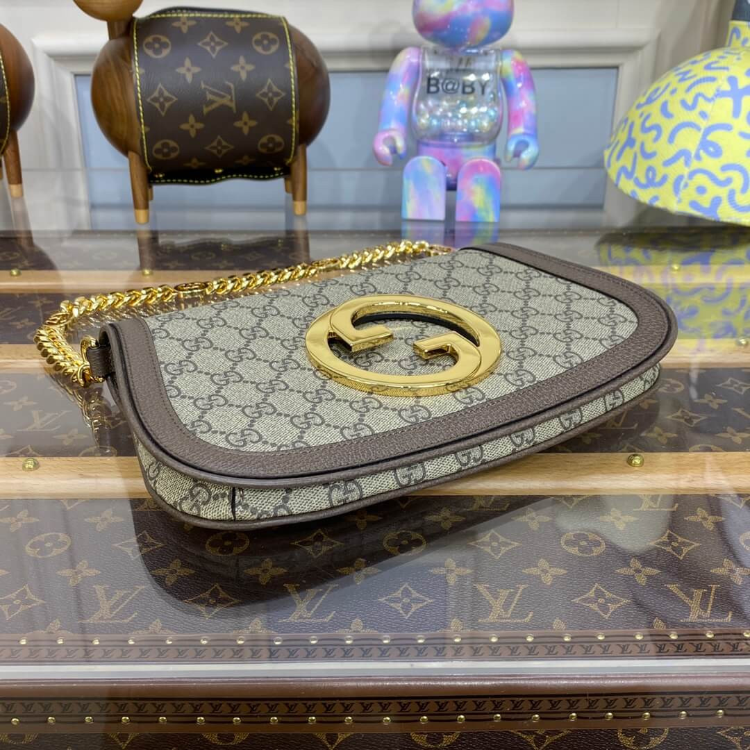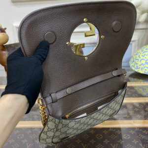 Vintage elements are paired with archival details as an ode to the glamour that permeated the Gucci Love Parade fashion show. This shoulder bag pairs a delicate chain strap with GG Supreme canvas to infuse the accessory with a timeless feel. Reintroduced in honor of the collection, the rounded silhouette is completed by a historical, rounded iteration of Guccio Gucci’s monogram.