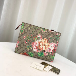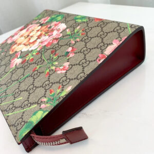 A large cosmetic case in our Blooms print on our GG Supreme canvas. The GG Blooms print was first presented throughout the Fall/Winter 2015 Fashion Show collection and has continued to evolve as an iconic Gucci design.