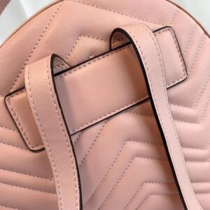 The GG Marmont backpack has a softly structured shape and Double G hardware. inspired by an archival design. The double zip leather pulls are exaggerated and add an unexpected touch. Made in soft matelasse chevron quilted leather.