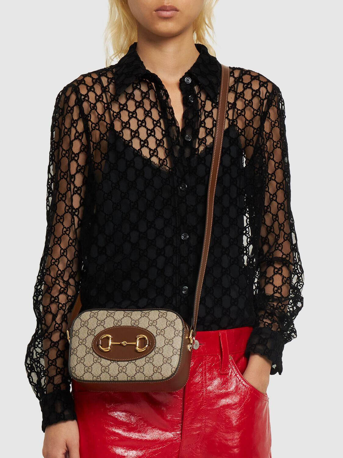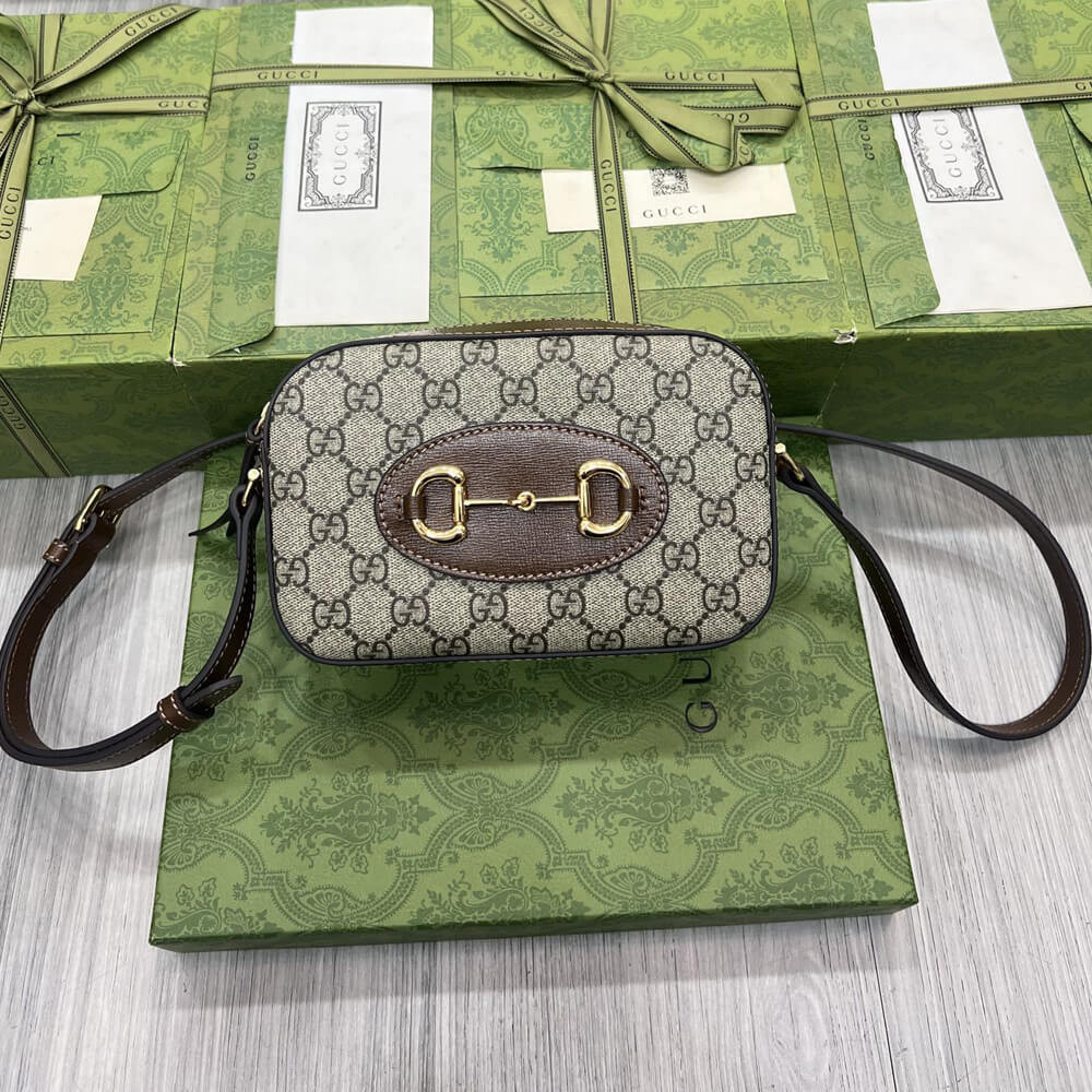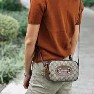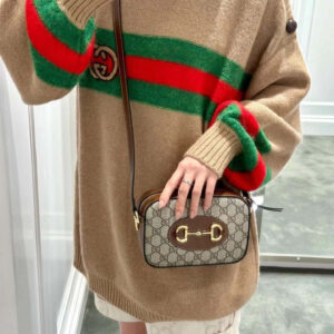 The Gucci 1955 Horsebit evolves as part of the latest collection with the addition of a small shoulder bag variation, offering greater versatility and functionality. Presented in signature beige and ebony GG Supreme canvas with a zip closure, an adjustable shoulder completes the design.