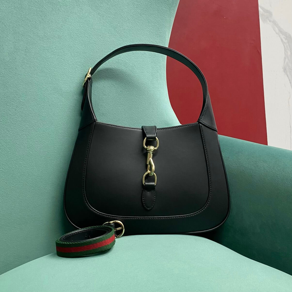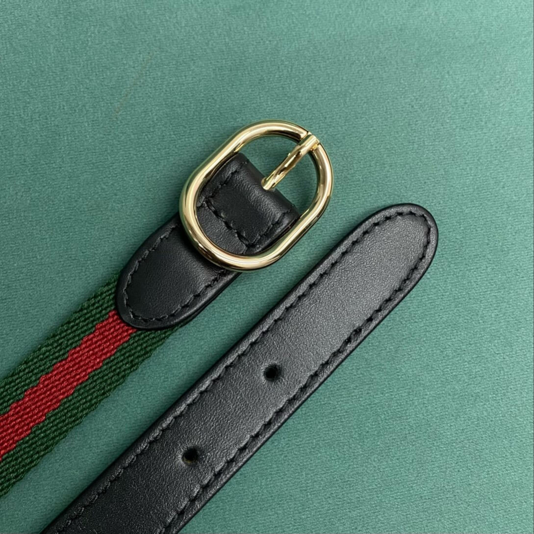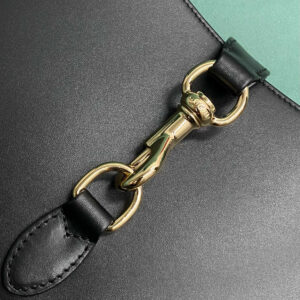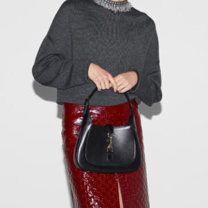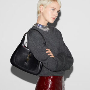 The new Gucci Jackie is crafted from premium fine leather which highlights the craftsmanship, crescent shape, and sleek silhouette of the House’s iconic shoulder bag. Light gold-toned hardware, leather trim, and an additional Web strap gives this Gucci Jackie small shoulder bag in light grey leather further styling options.