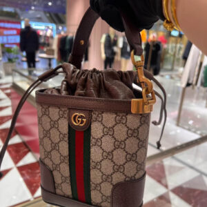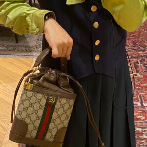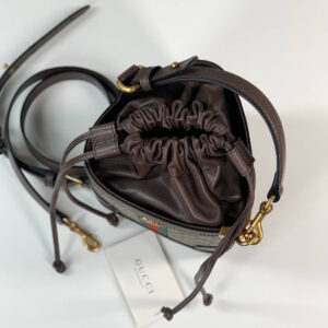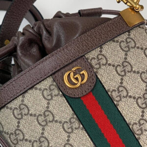 Gucci heritage meets contemporary design with the continuation of Ophidia. With its two archival details, the Web and the Double G hardware, the line takes on new shapes and dimensions in the Pre-Fall collection. This vertical men’s shoulder bag presents the two House emblems atop the classic beige and ebony GG Supreme canvas, complete with drawstring closure.