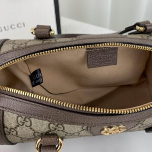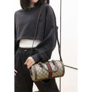 A classic combination of the House’s most defining codes??the GG motif and Web stripe??the world of Ophidia continues to evolve. incorporating new shapes and silhouettes each season. With recognizable design elements in a top handle shape. the Boston bag is trimmed with textured leather and topped with Double G hardware.