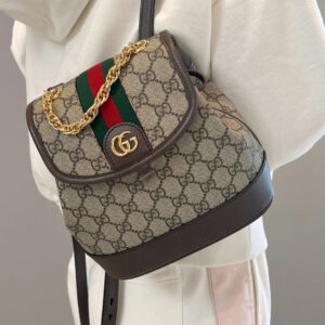 Gucci heritage meets contemporary design with the continuation of Ophidia. This backpack is presented in beige and ebony GG Supreme canvas, enriched with the historic Web. Adjustable shoulder straps complete the modern design.