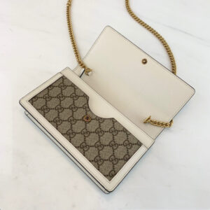 An eclectic mixture of historical Gucci details and newly established codes. the Queen Margaret line evolves with the introduction of a mini bag. Presented in GG canvas. a versatile fabric that continues to pay homage to the House’s roots. the accessory is enriched by a metal bee adorned with glass pearls and multicolour crystals??a precious play on an archival symbol from the ’70s.