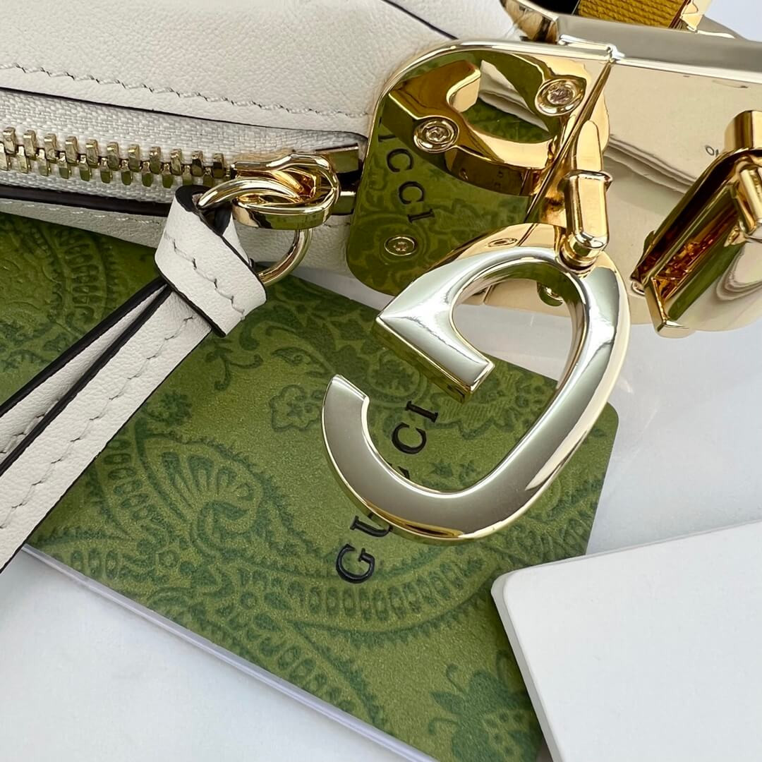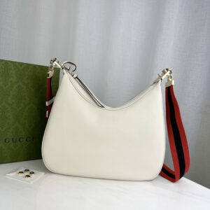 An ode to the timeless Hollywood glamour that shaped Gucci Love Parade, classic elements from the House’s archives are reintroduced. Distinguished by its crescent moon shape, the accessory is further defined by a G shaped hook closure. Paired with soft materials, the heritage hardware creates a refined design with vintage appeal. This medium version is crafted in black leather with orange and black Web trim.