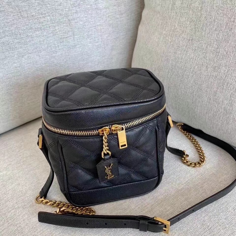– Adjustable leather and chain shoulder strap with 45.5 cm drop