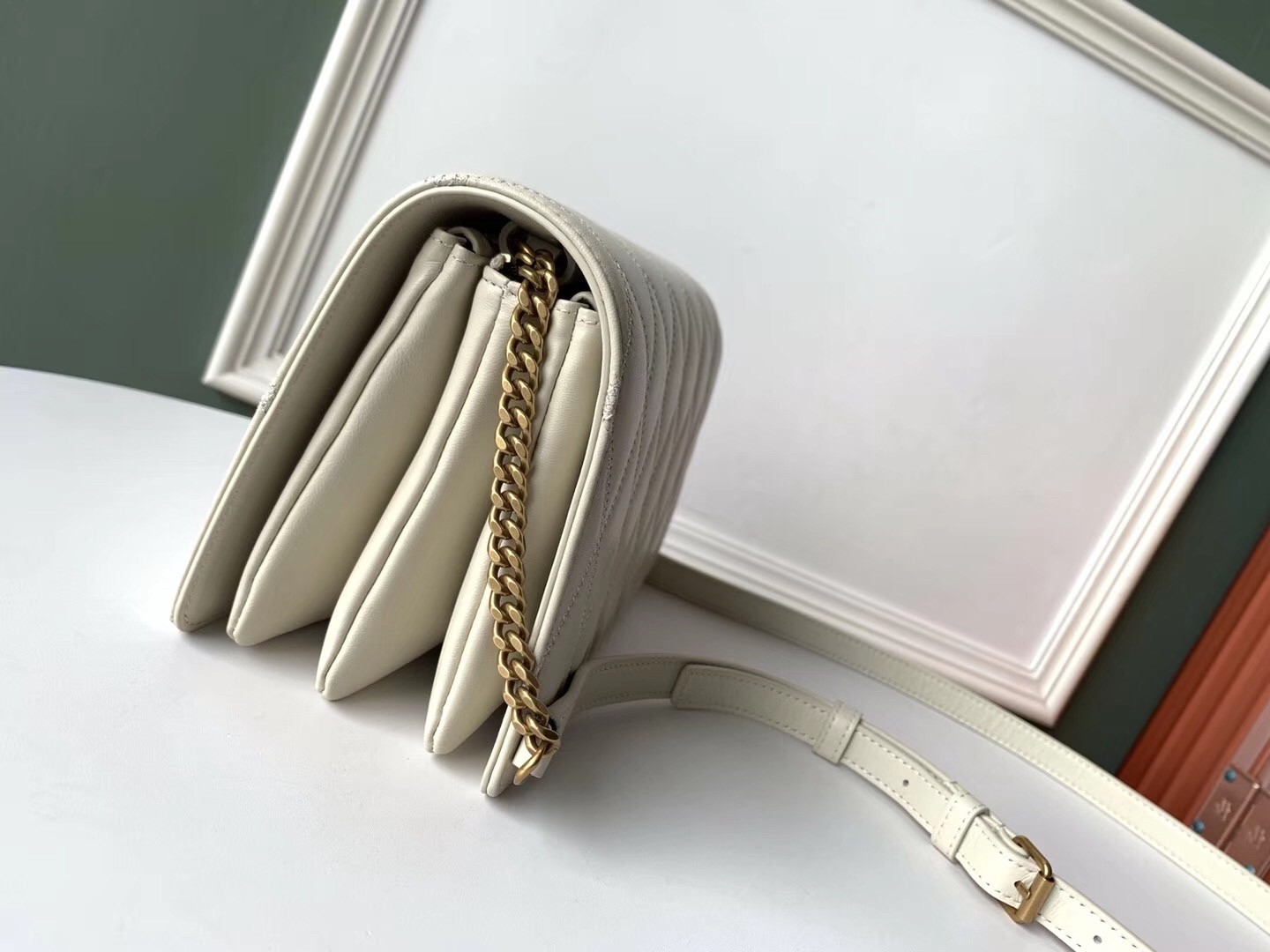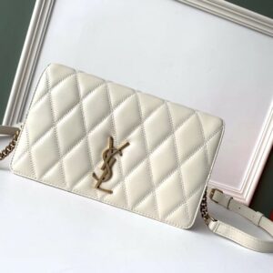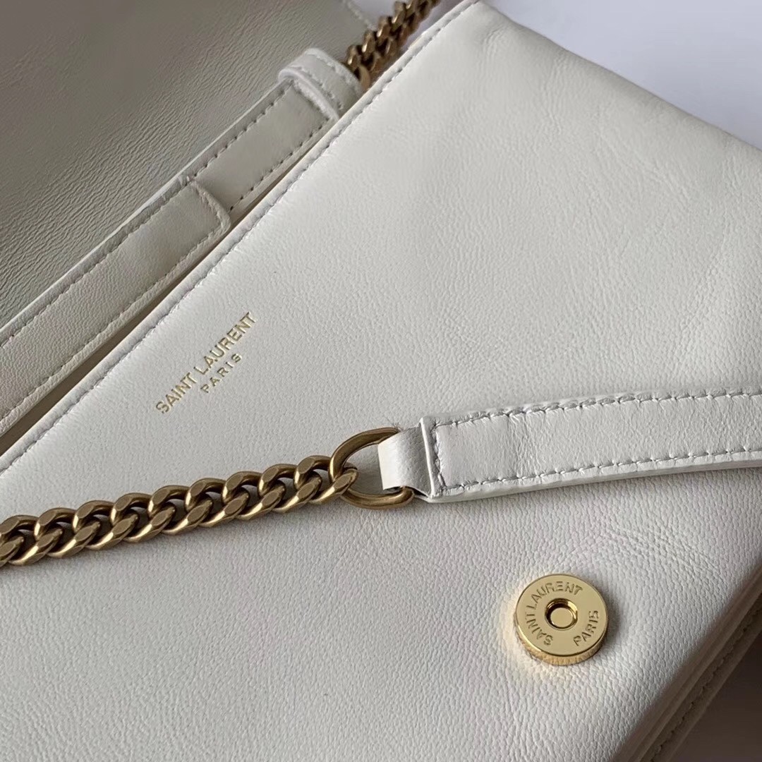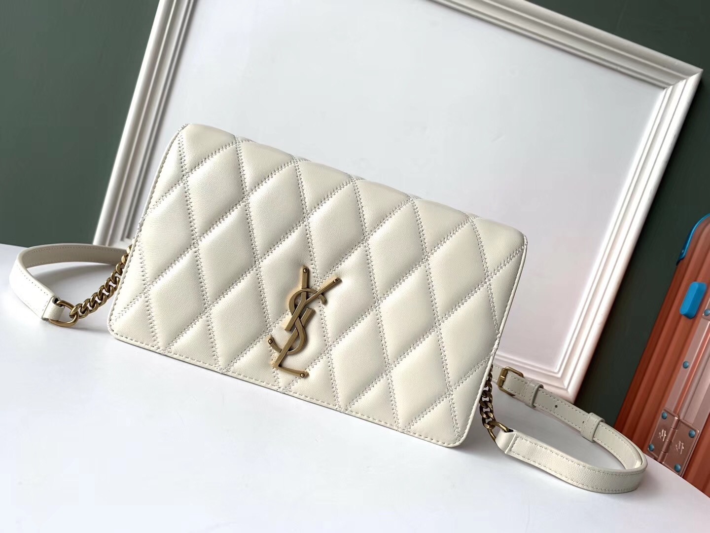 Saint Laurent Angie Chain Bag In White Diamond Lambskin