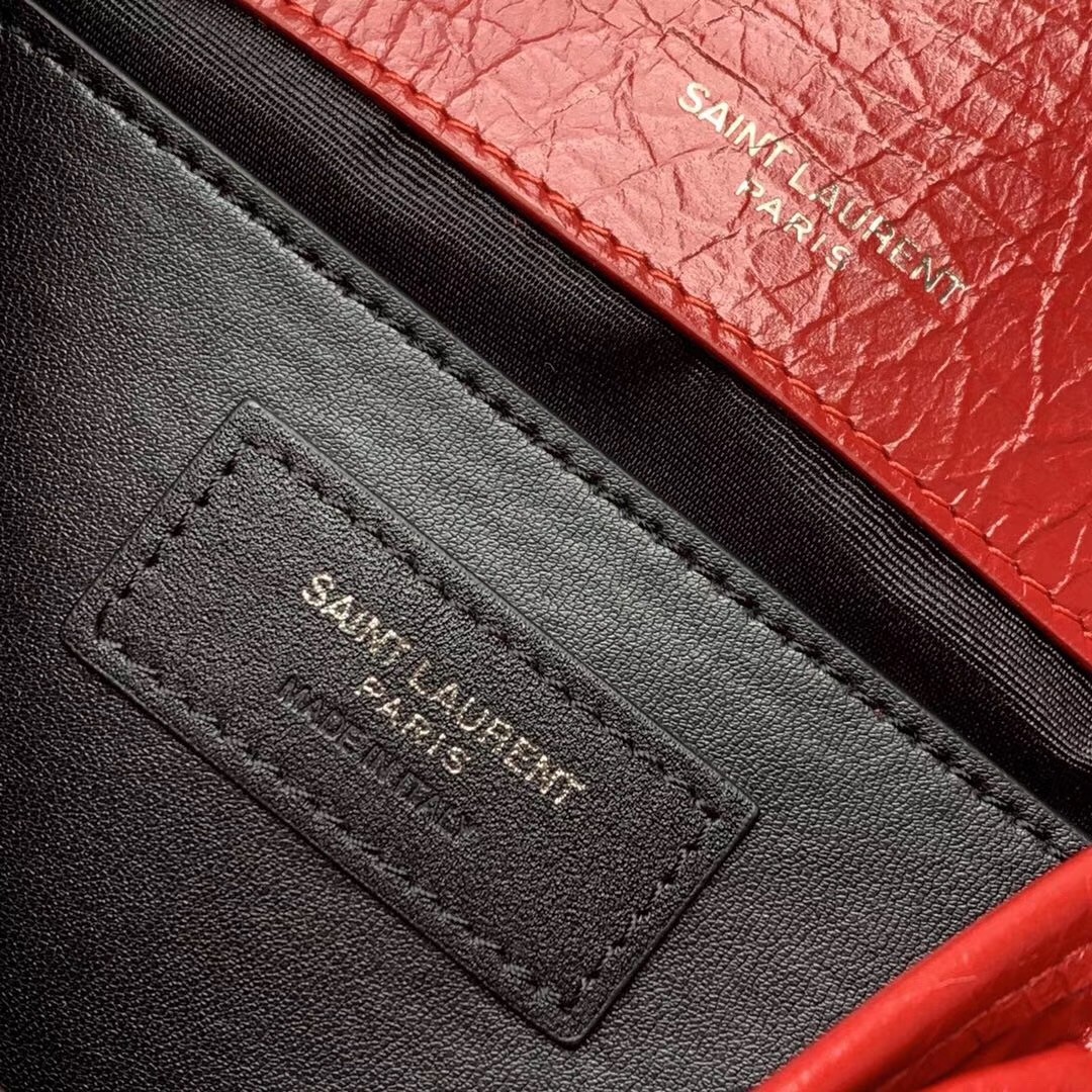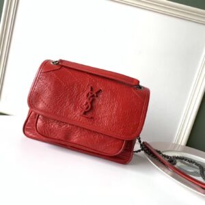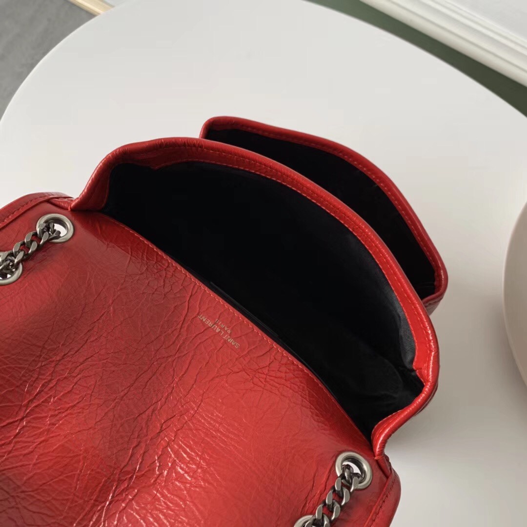 Saint Laurent Baby Niki Chain Bag In Red Crinkled Leather