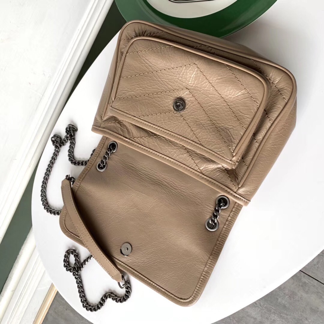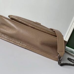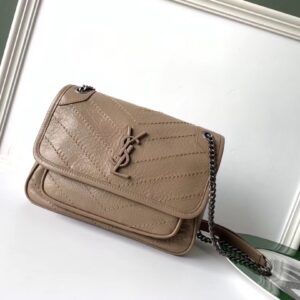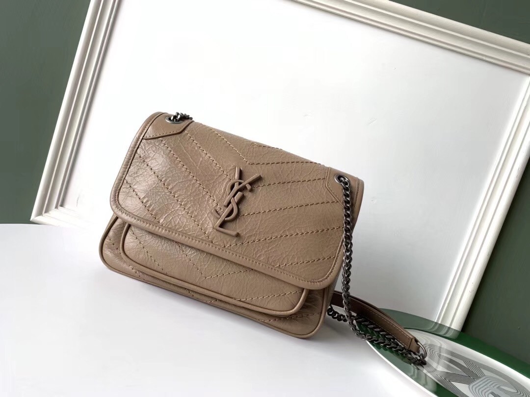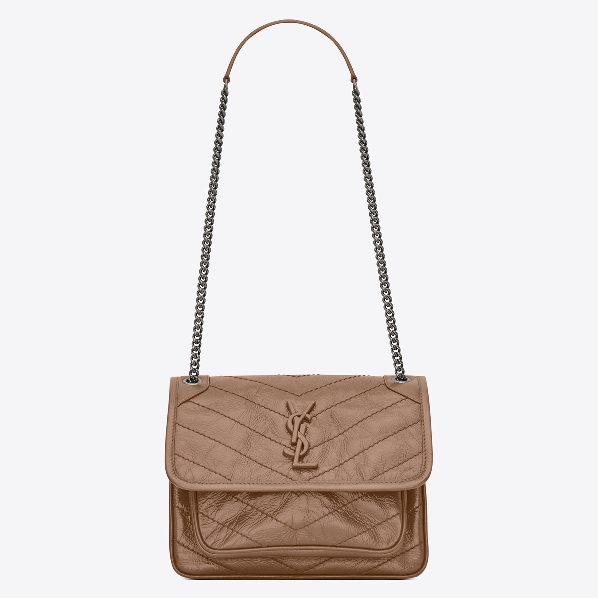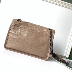 – One central compartment, one inside pocket, one zippered pocket, one open pocket in back, and one pocket under flap