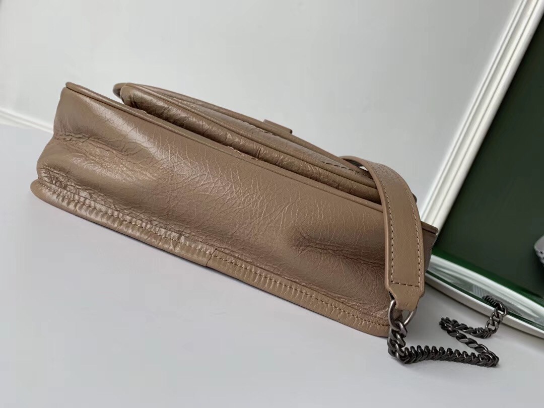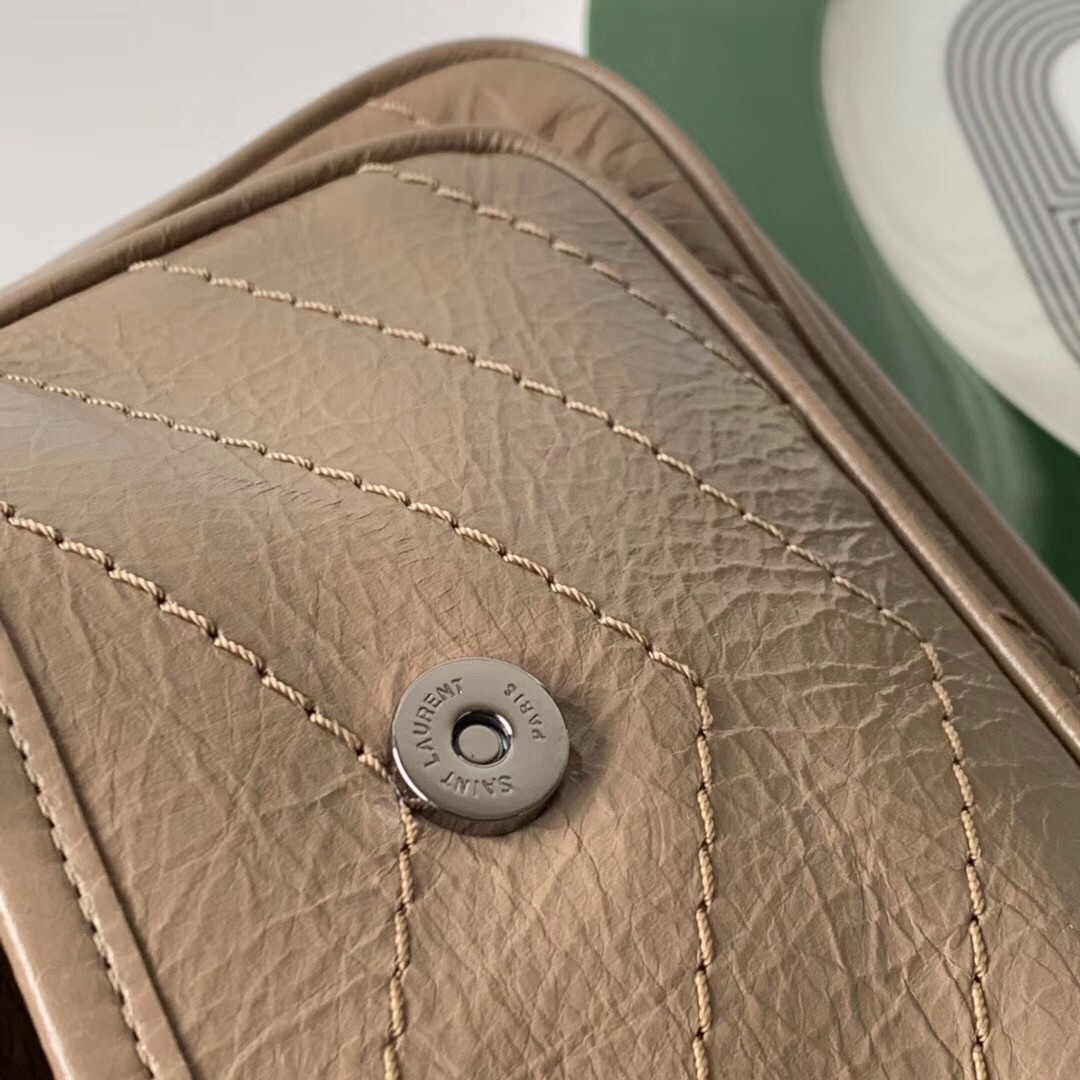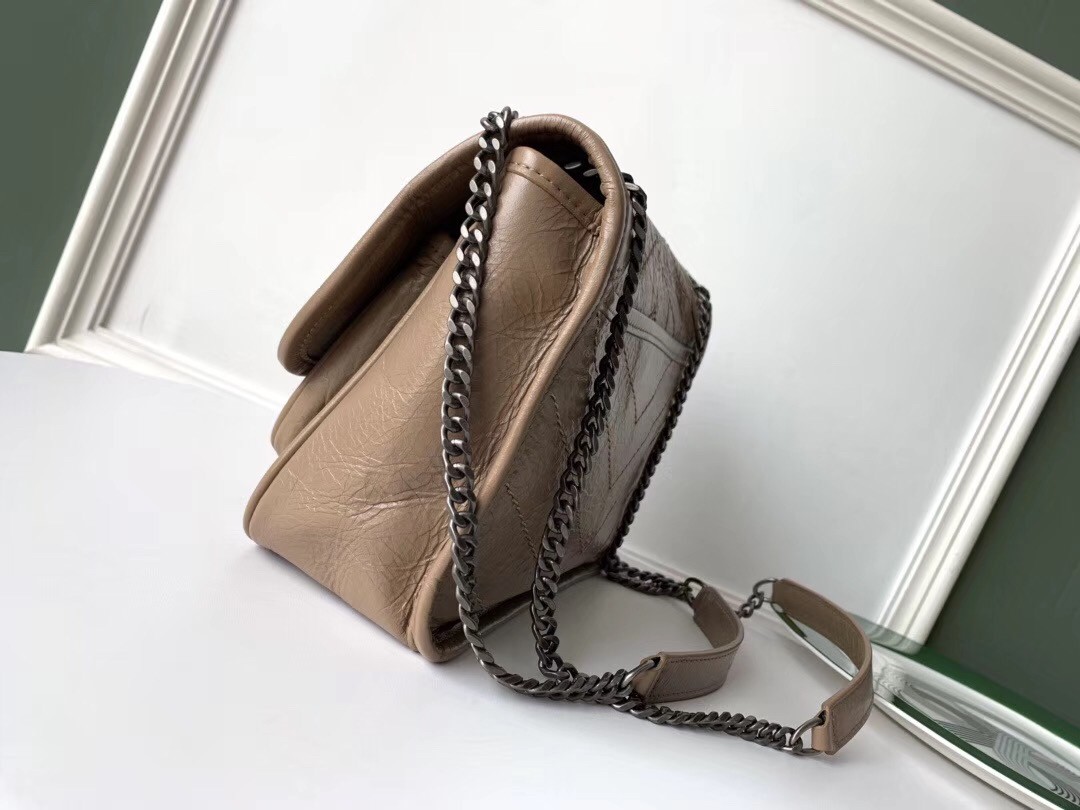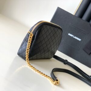 – One central compartment, one inside pocket, one zippered pocket, one open pocket in back, and one pocket under flap
