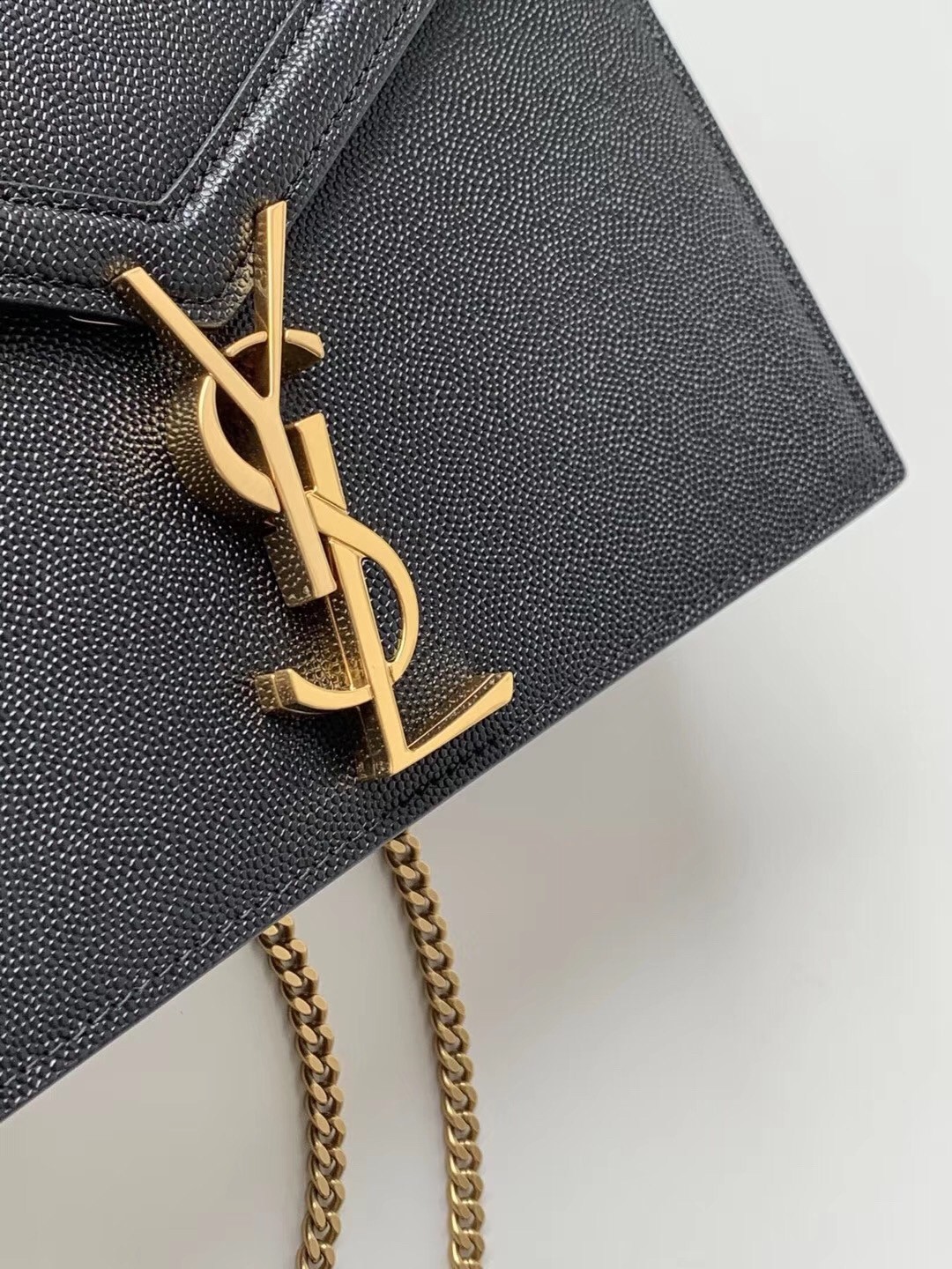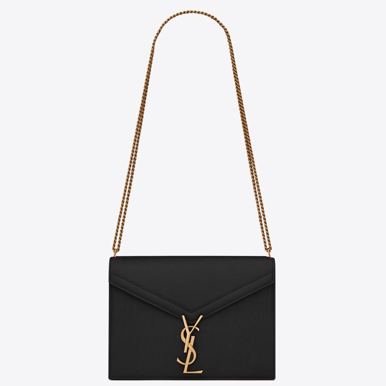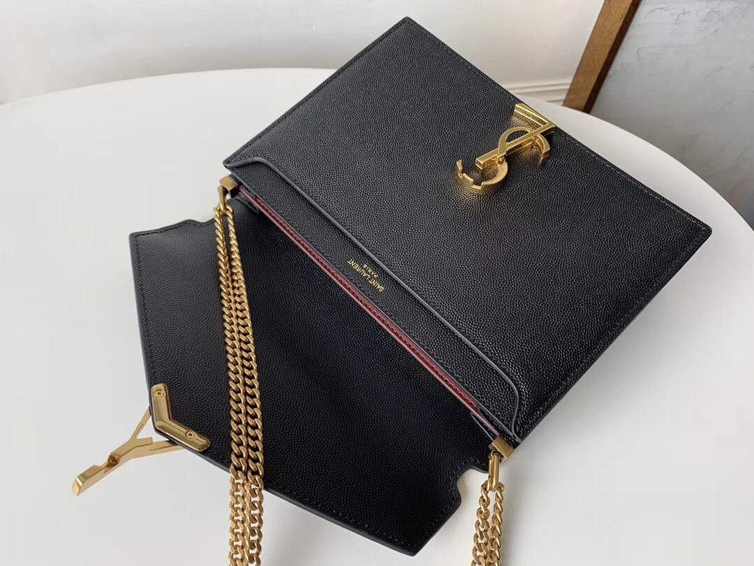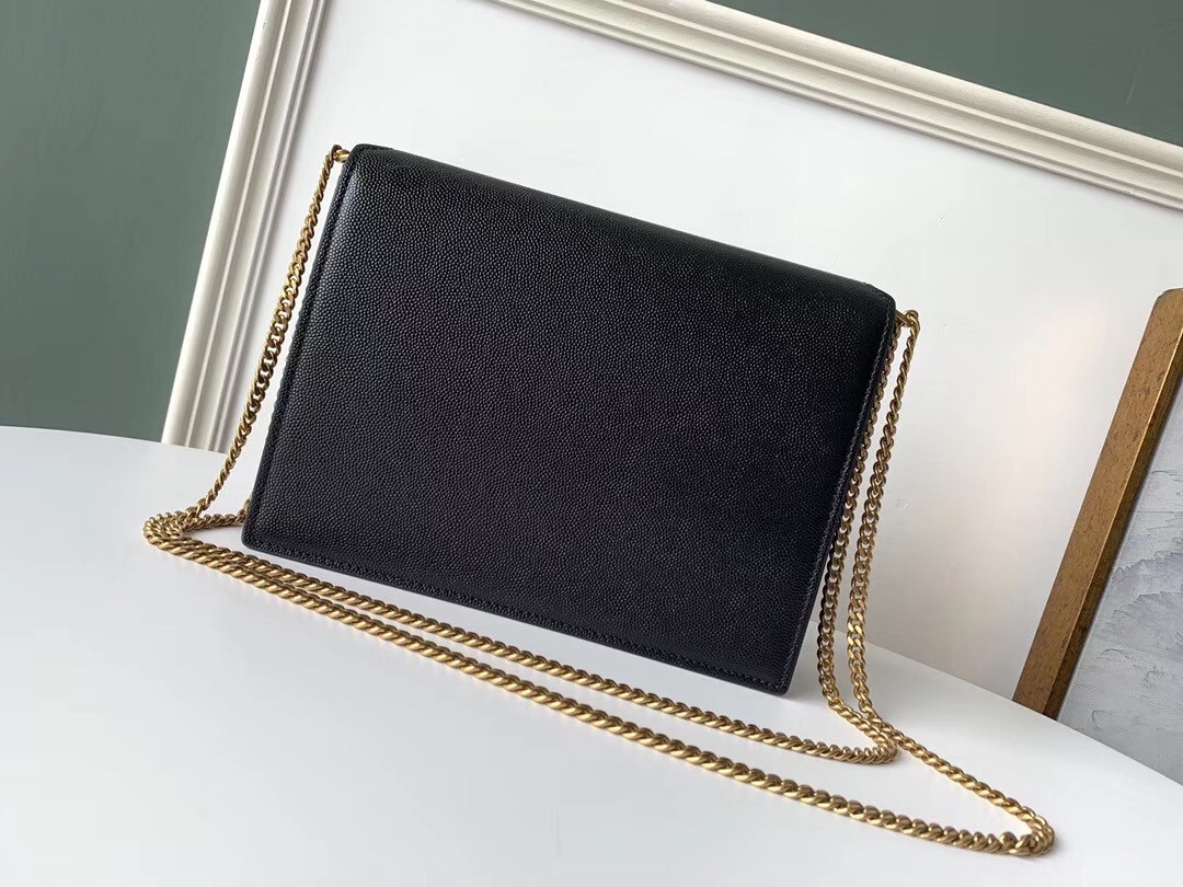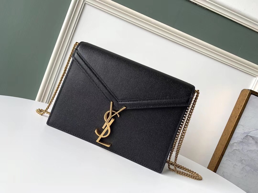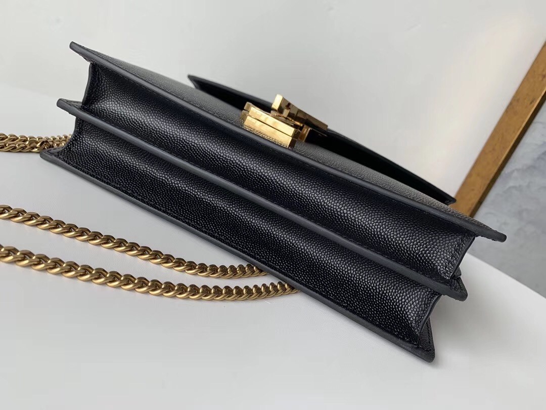 Saint Laurent Cassandra Clasp Bag In Black Grained Leather