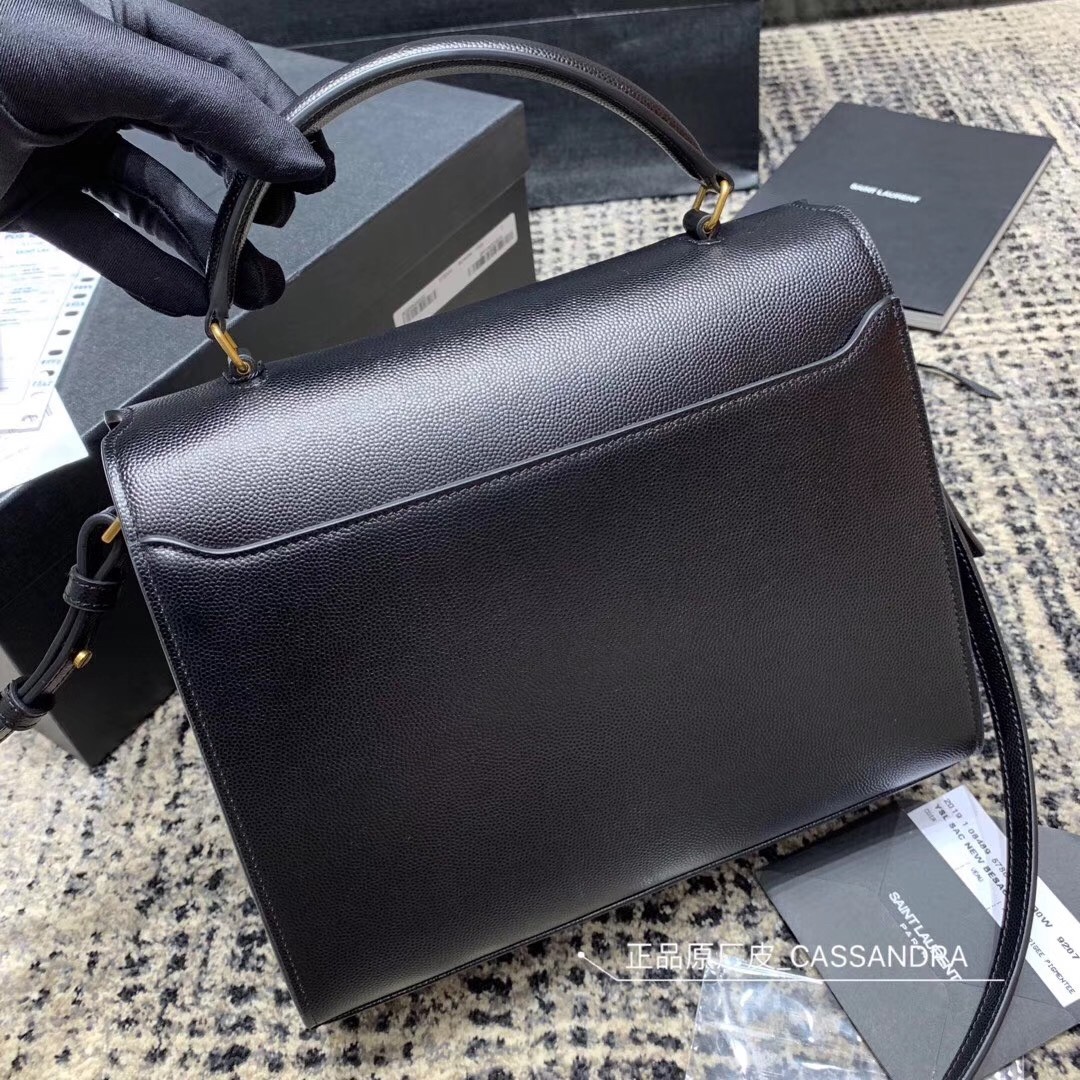 Saint Laurent Cassandra Medium Bag In Black Grained Leather