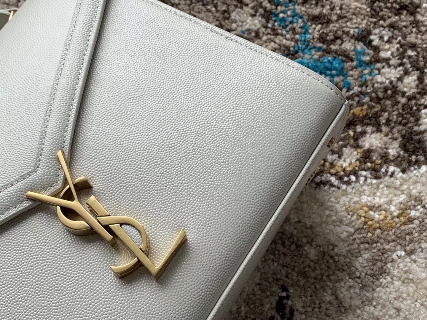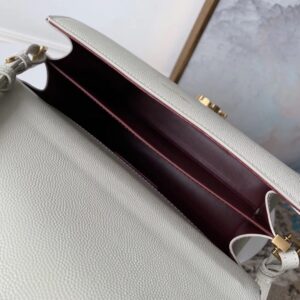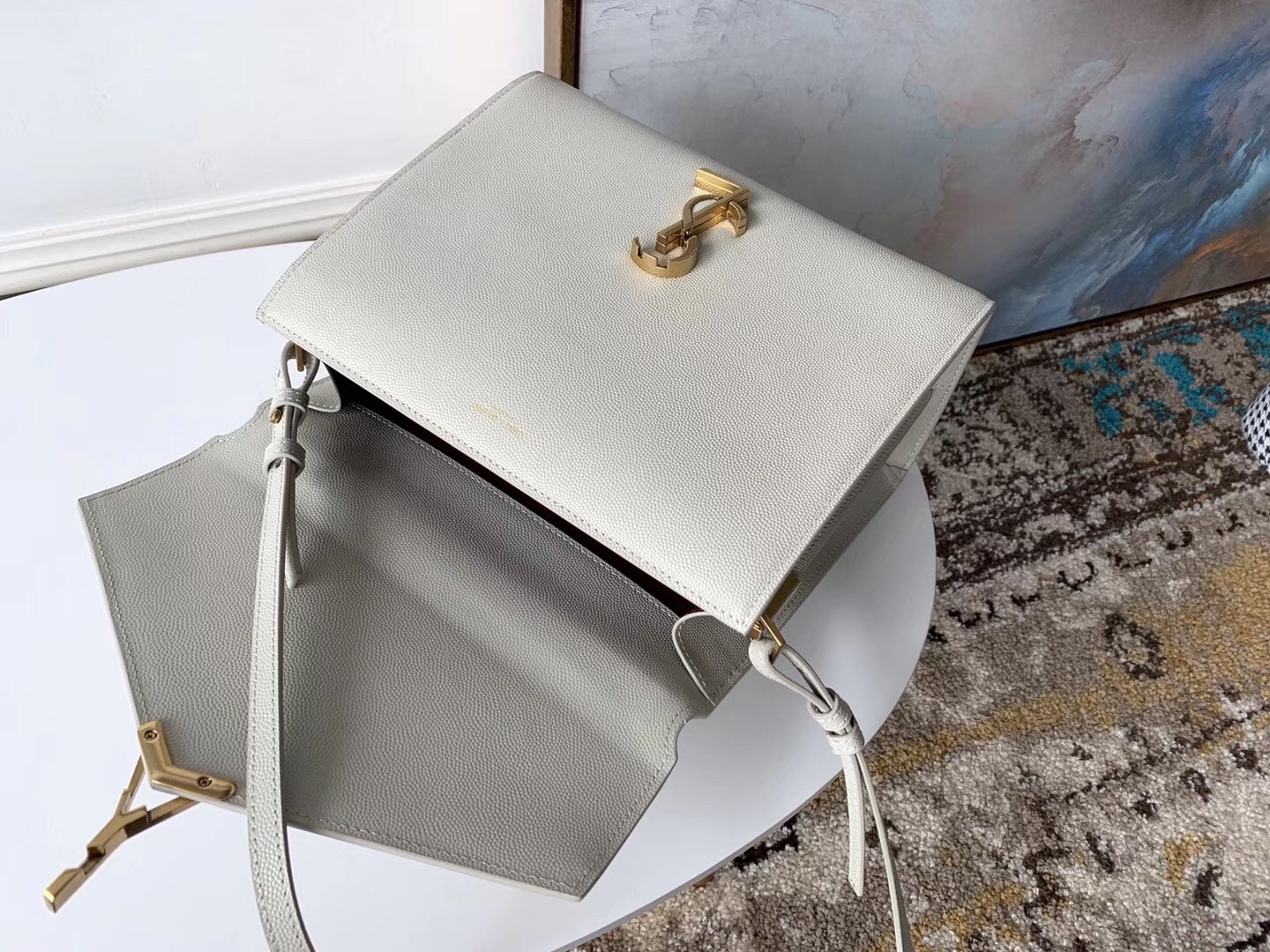 The highly covetable Saint Laurent Cassandra bag combines grained leather with the signature YSL hardware that aptly functions as a puzzle-like clasp. Perfectly sized for dusk-to-dawn endeavours, the spacious interior keeps cards, phones and other evening essentials organised with its compartmentalised design. Carry it by the ladylike top handle or sling it over the shoulder with the chain strap.