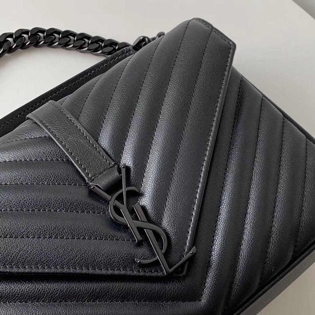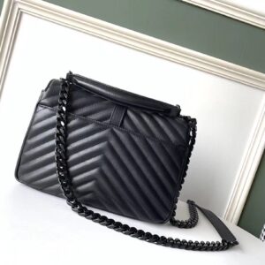 Saint Laurent College Medium All Black Matelasse Leather Bag