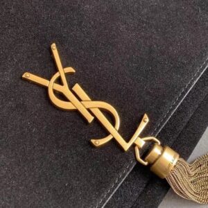 – Metal YSL initials and a chain tassel