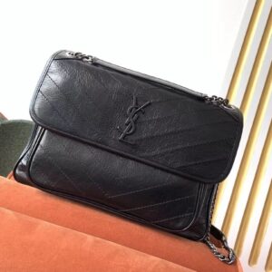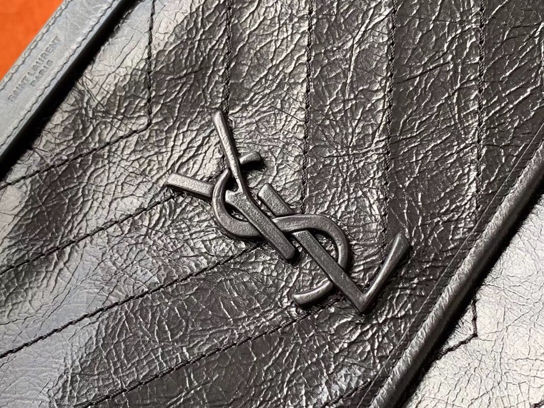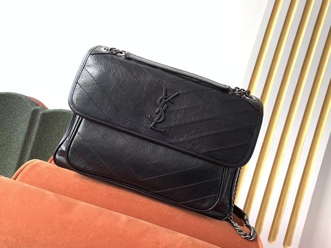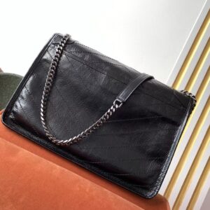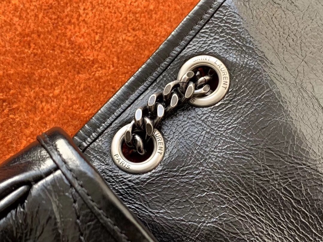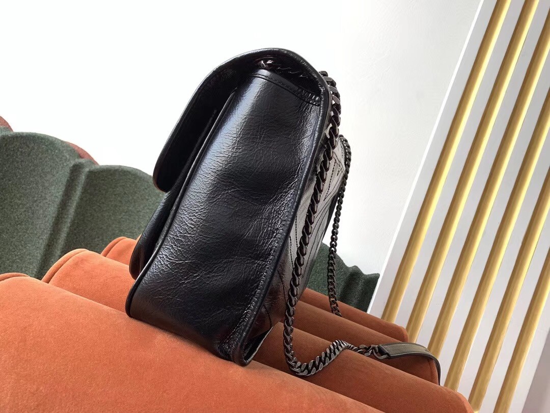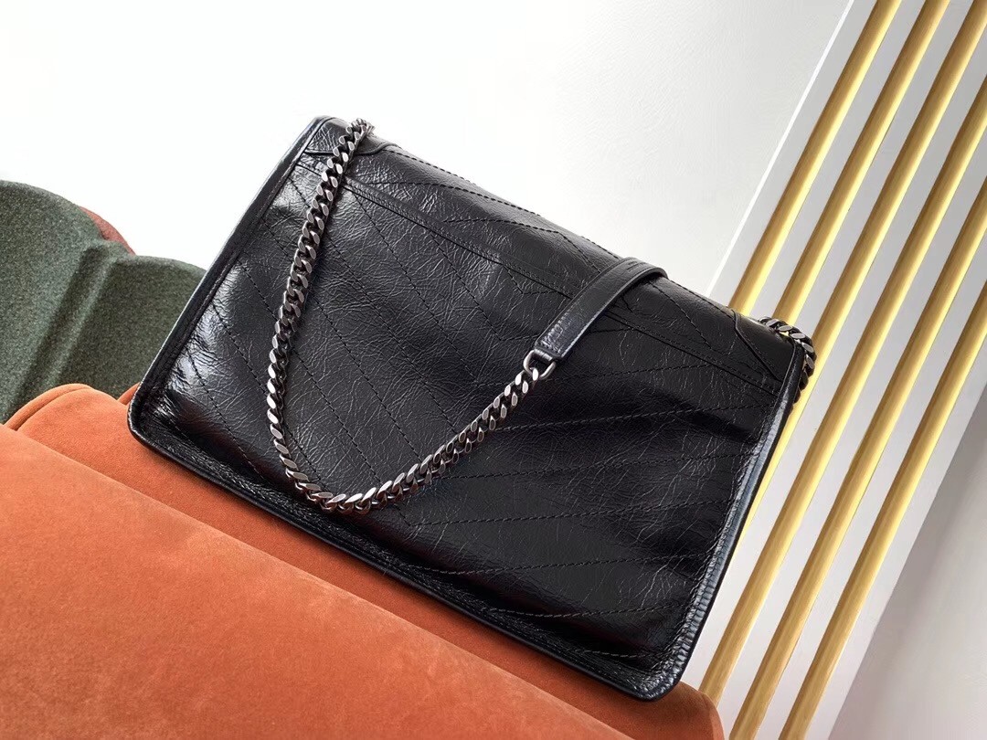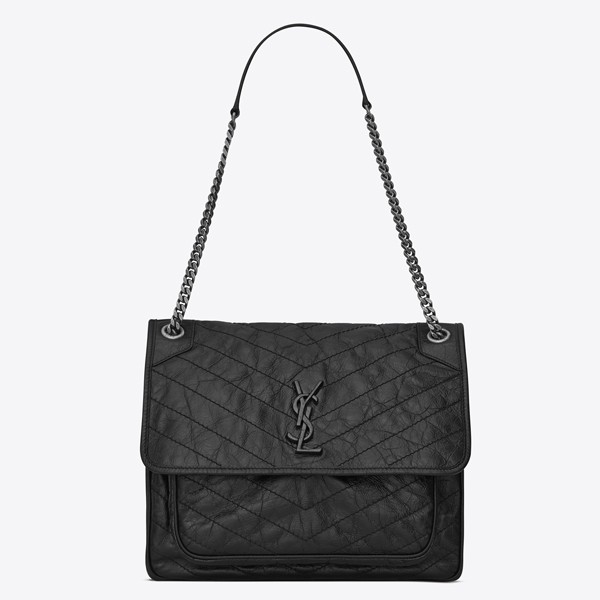 Saint Laurent Large Niki Chain Bag In Black Crinkled Leather