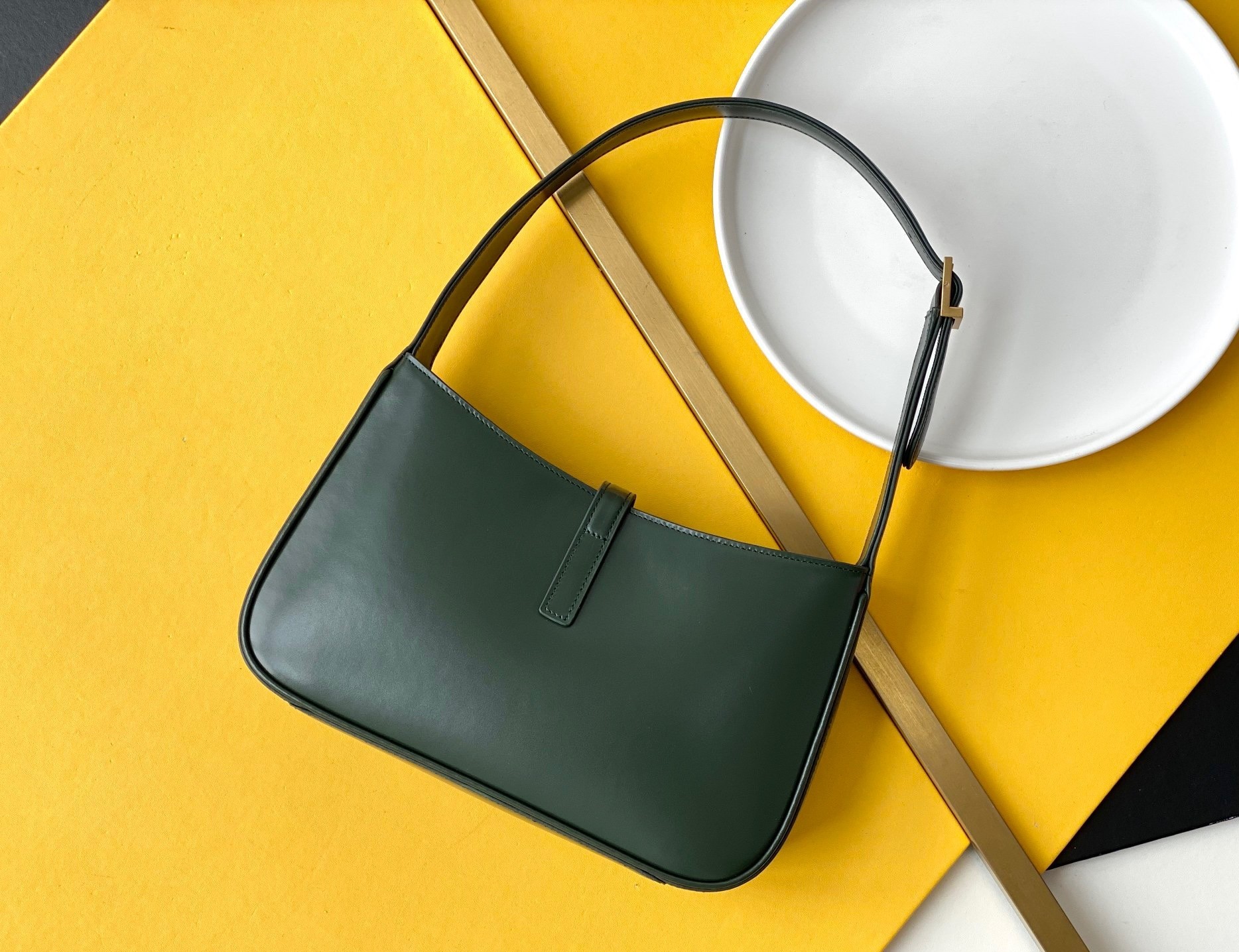 Saint Laurent Le 5 À 7 Hobo Bag in Green Smooth Leather