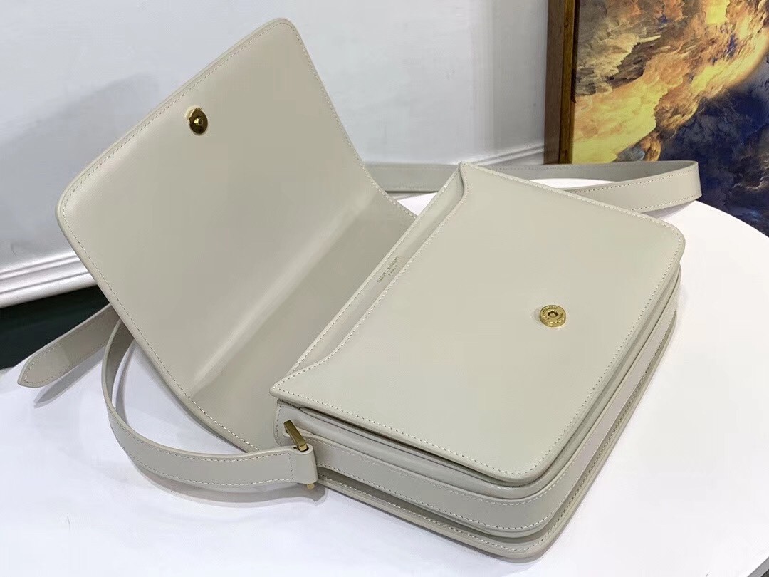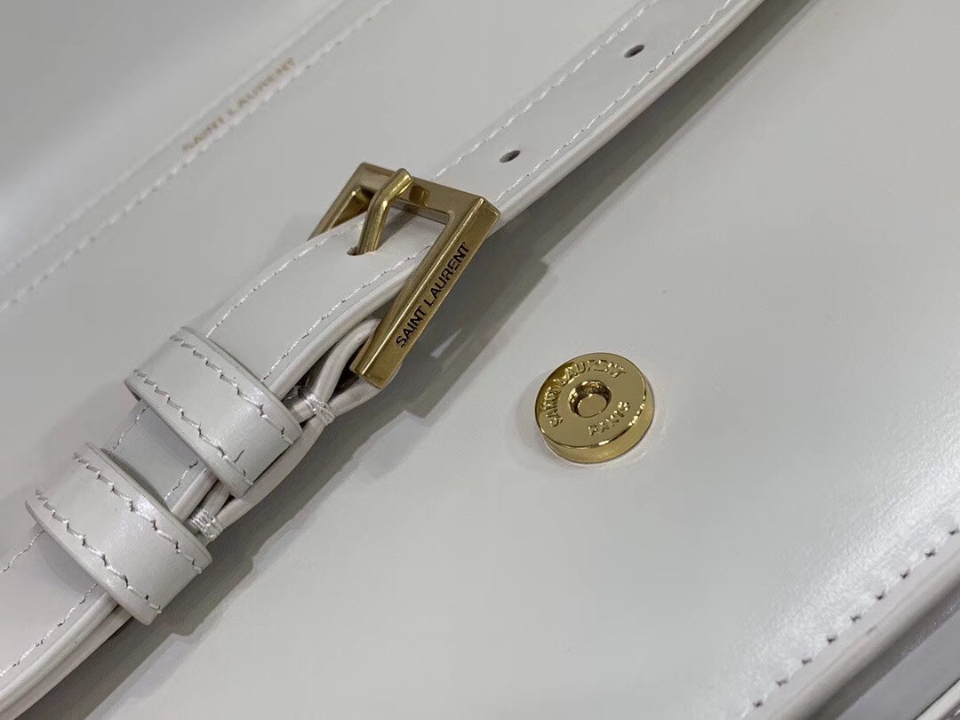 Saint Laurent LE 61 Medium Saddle Bag In White Leather