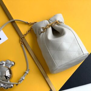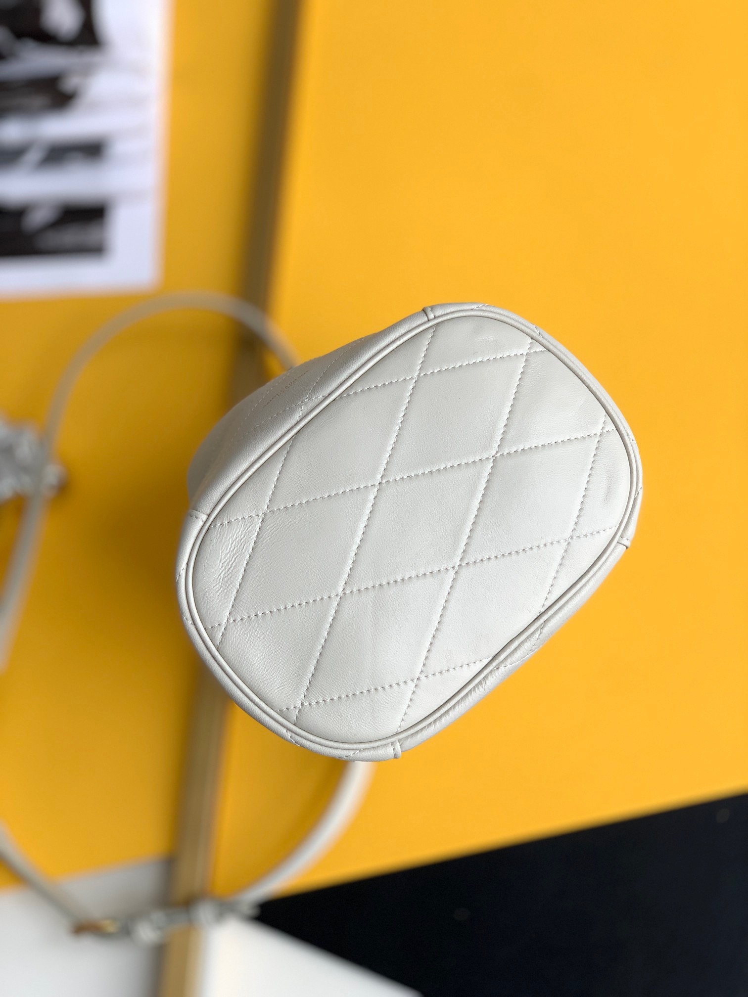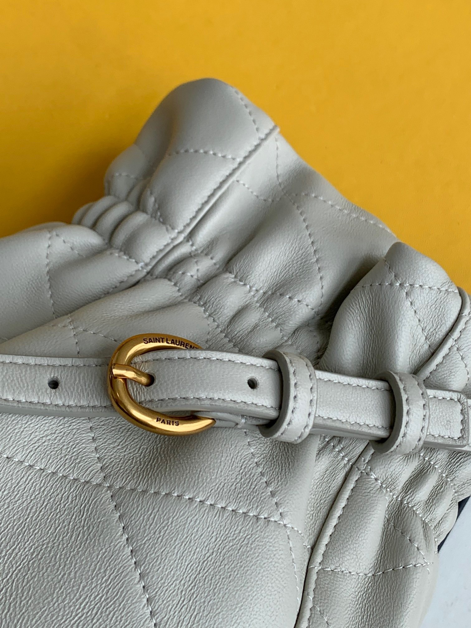 Saint Laurent Le Maillon Hook Bucket Bag In White Lambskin