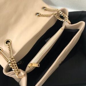 – Leather and metal chain strap can be worn doubled on the shoulder