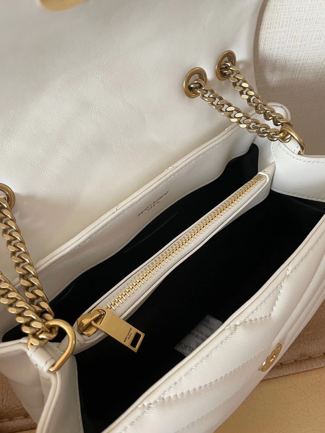 – Front flap with interlaced metal YSL initials