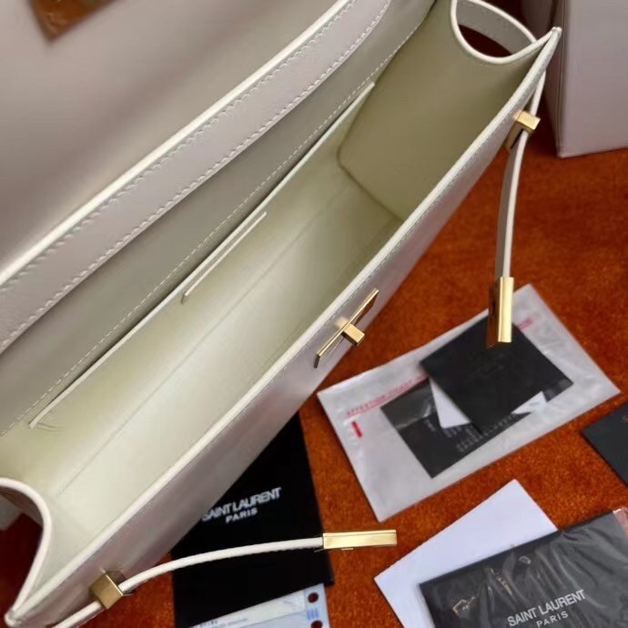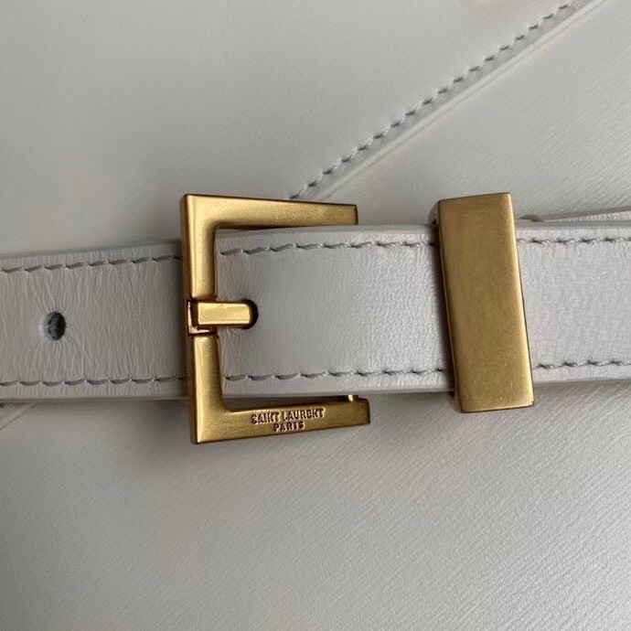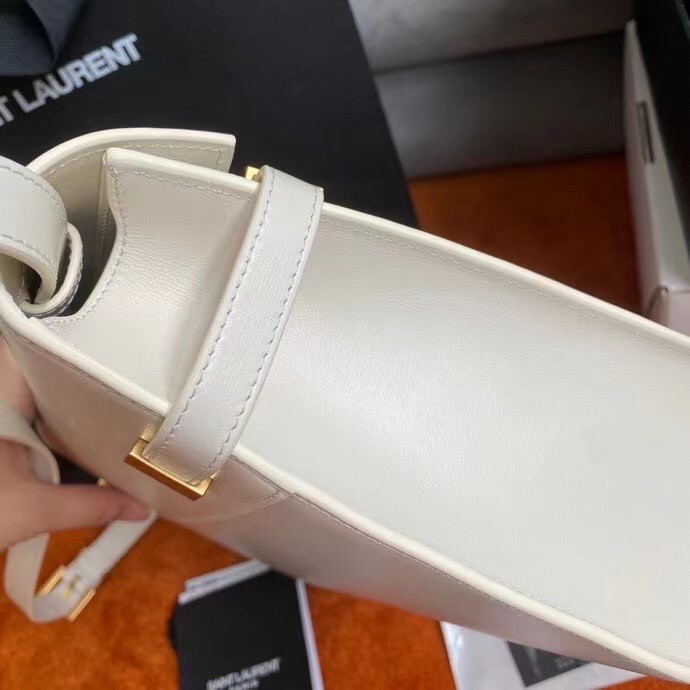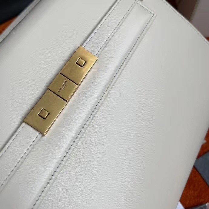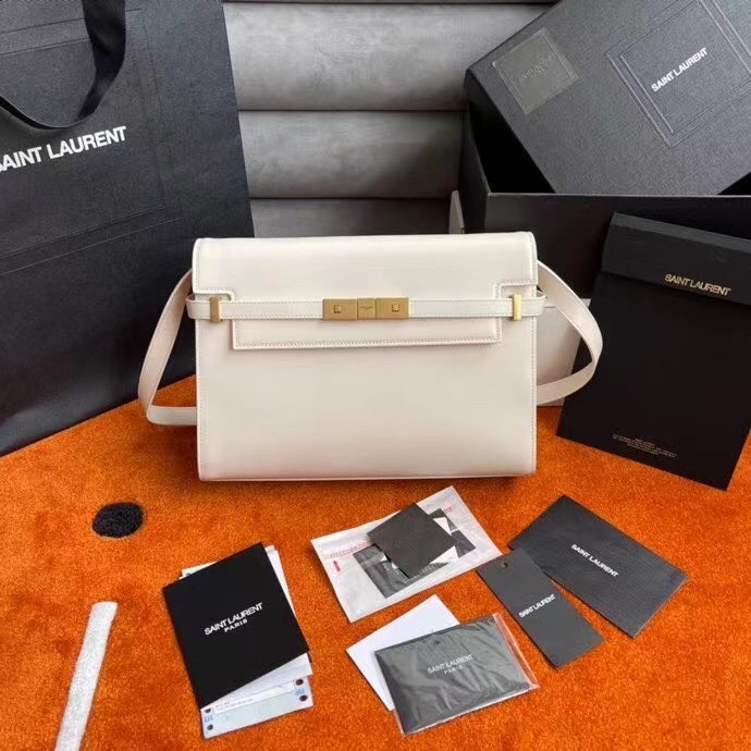 Saint Laurent Manhattan Baguette Bag In White Calfskin