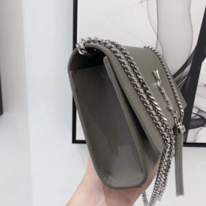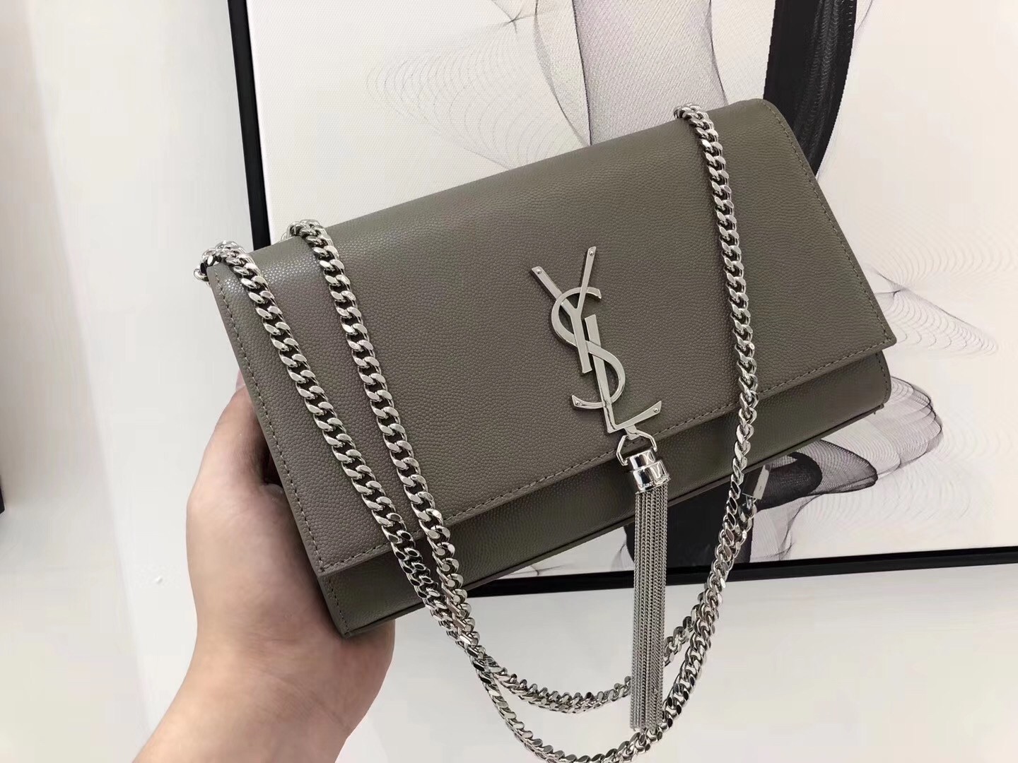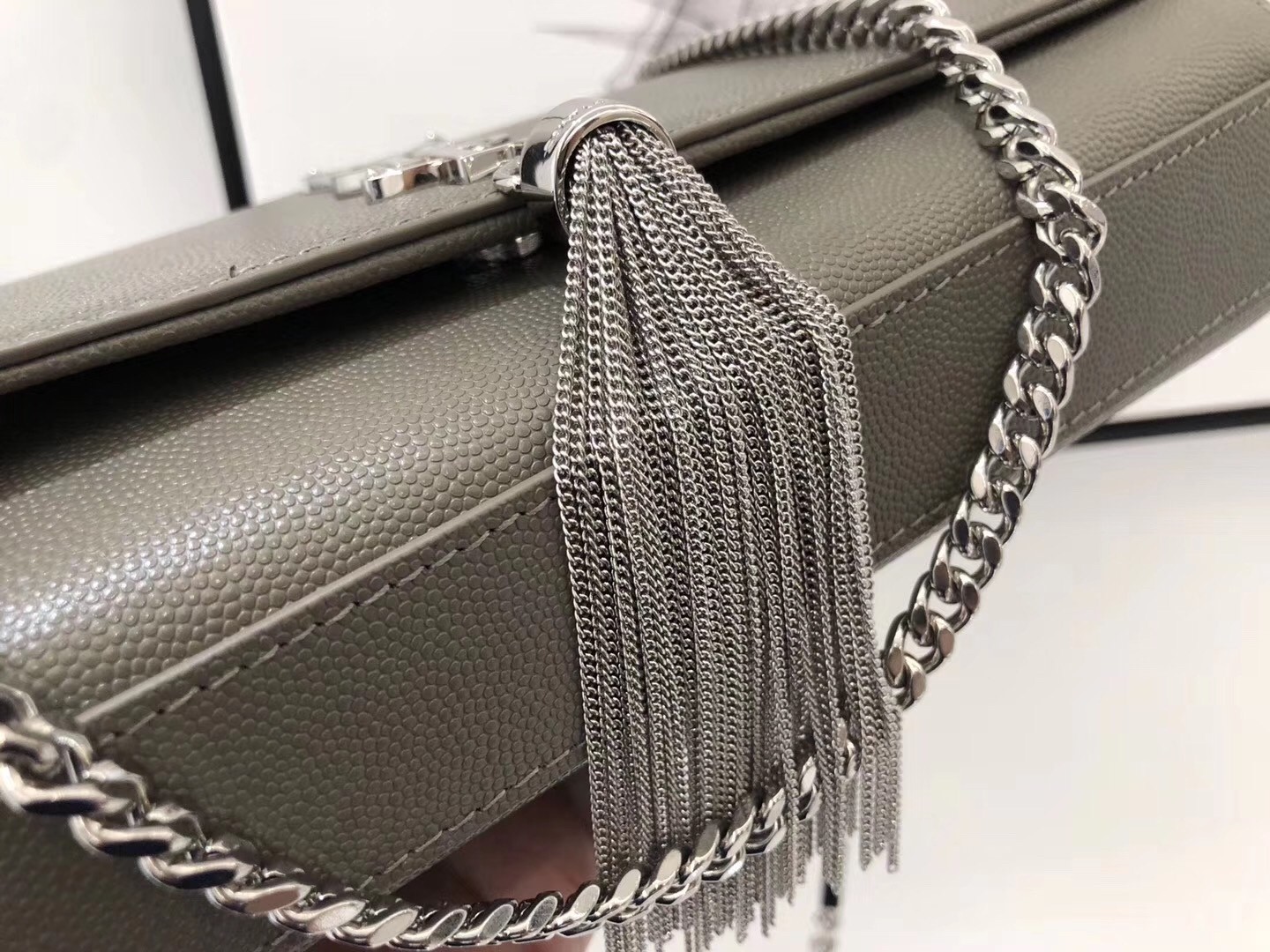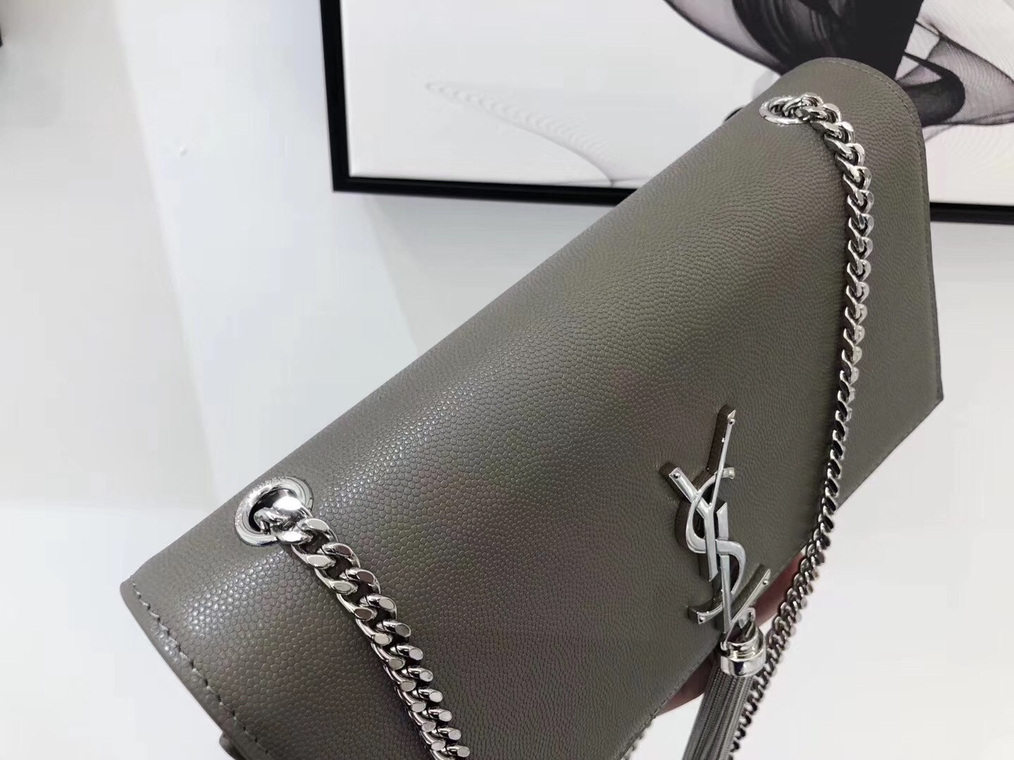 Saint Laurent Medium Kate Bag With Tassel In Grey Grained Leather