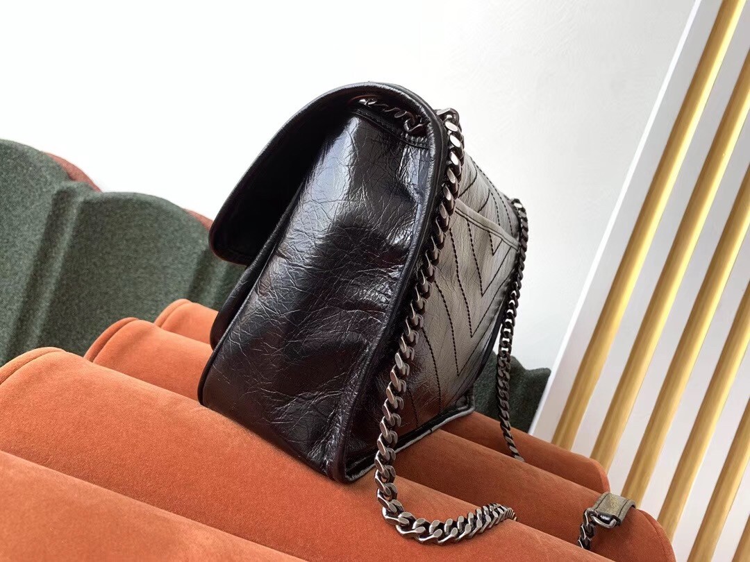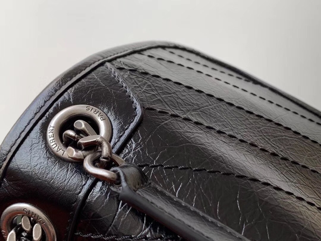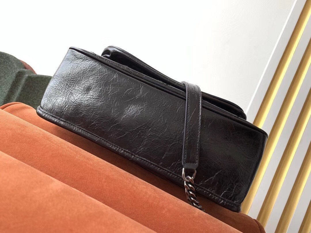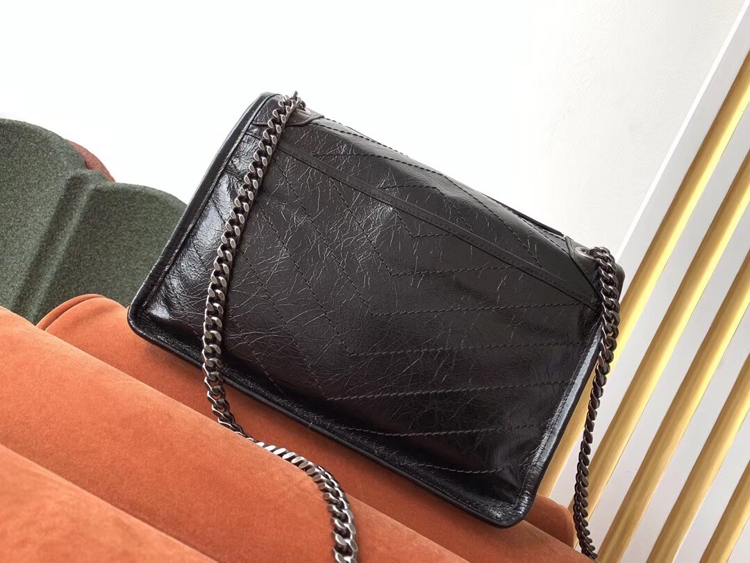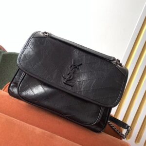 Saint Laurent Medium Niki Bag In Black Crinkled Leather
