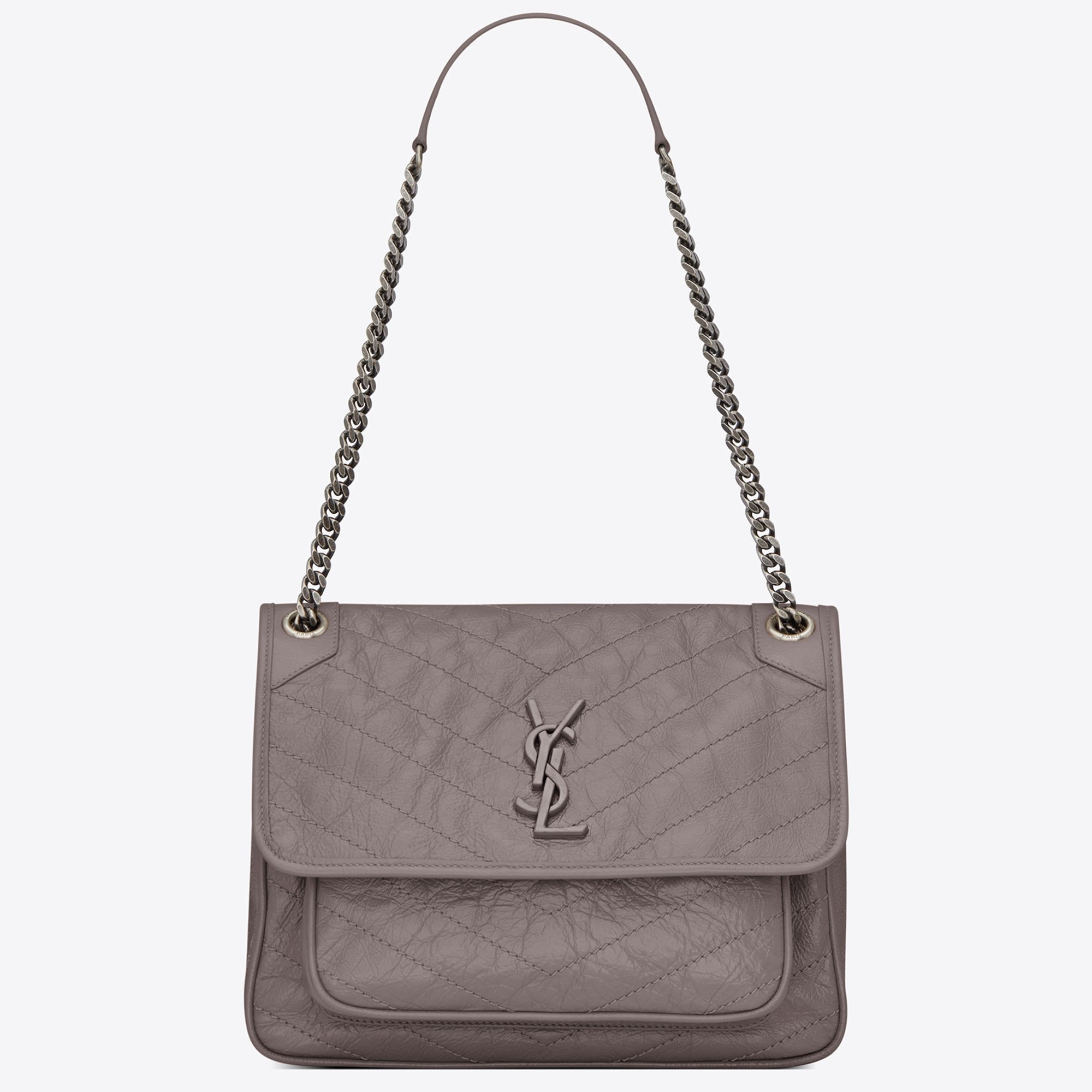 – One central compartment, one inside pocket, one zippered pocket, one open pocket in back, and one pocket under flap