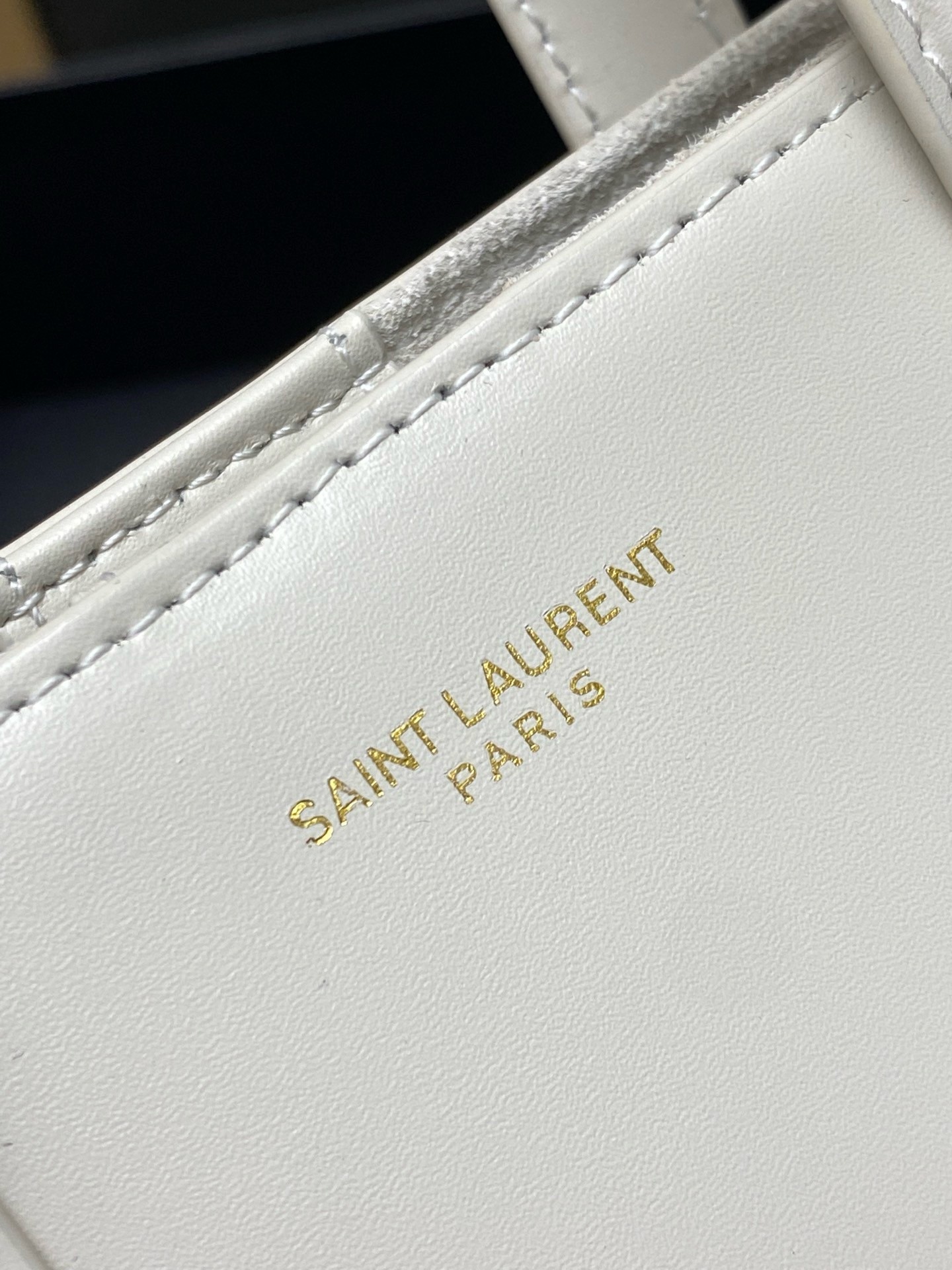 Saint Laurent Mini Toy Shopping Bag in White Calfskin