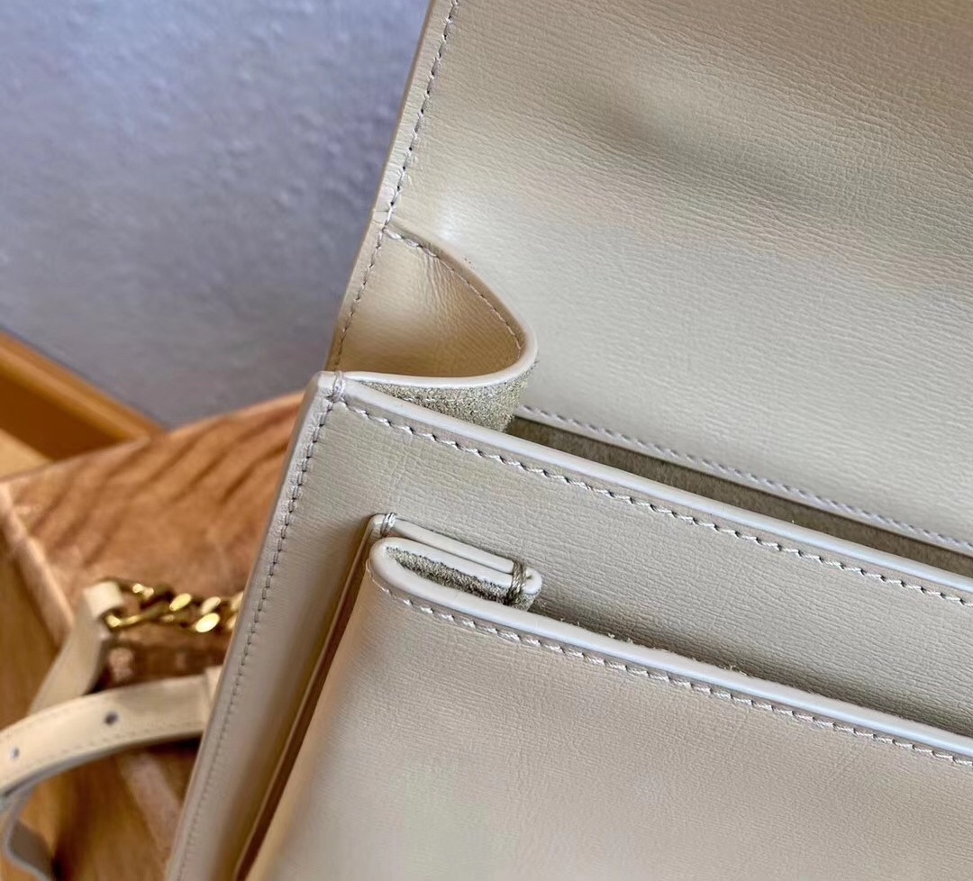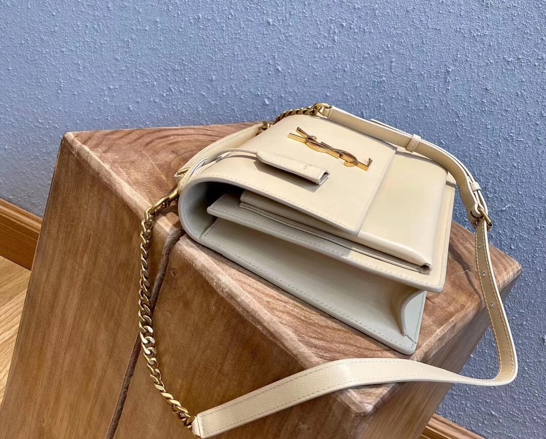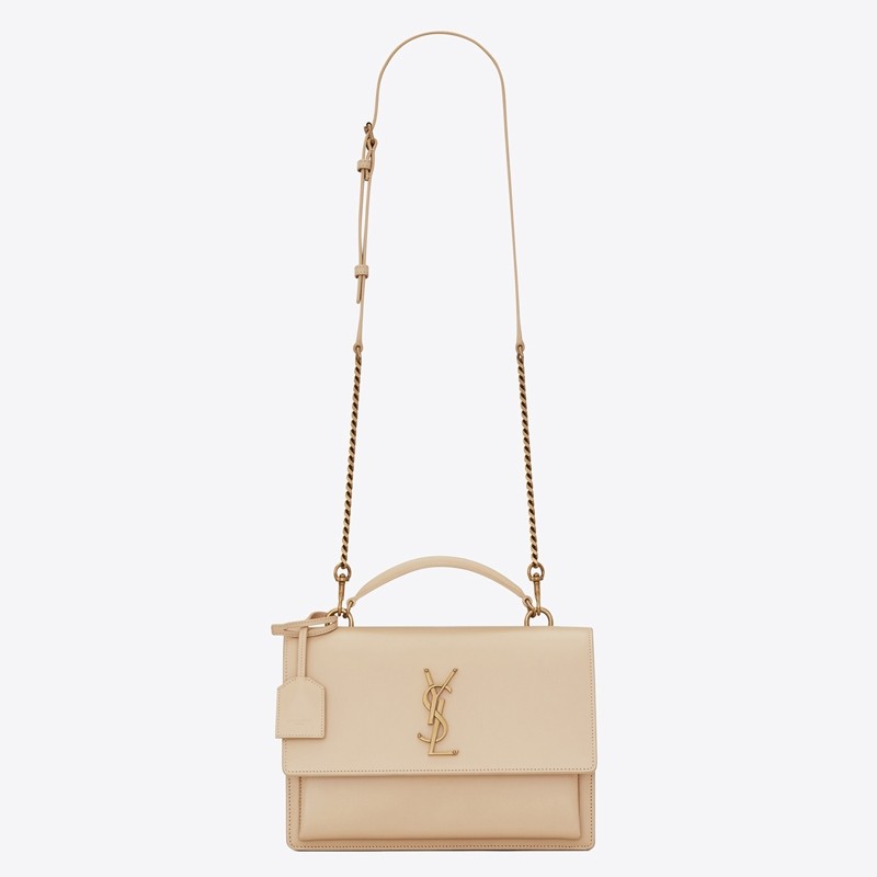 Saint Laurent New Medium Sunset Bag In Beige Calfskin