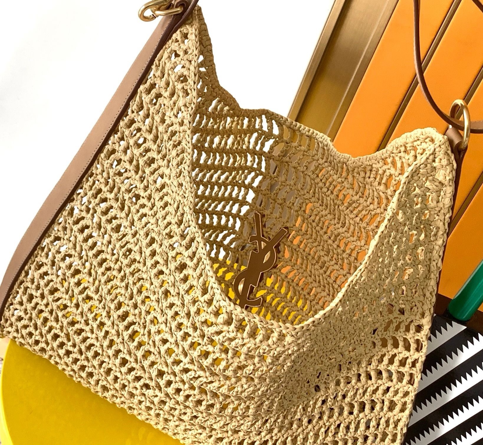 Saint Laurent Oxalis Shoulder Bag in Naturel Raffia