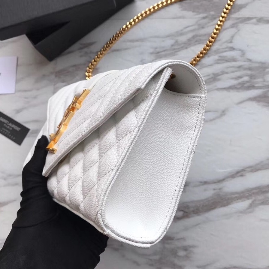 Saint Laurent Small Envelope Bag In White Grained Leather