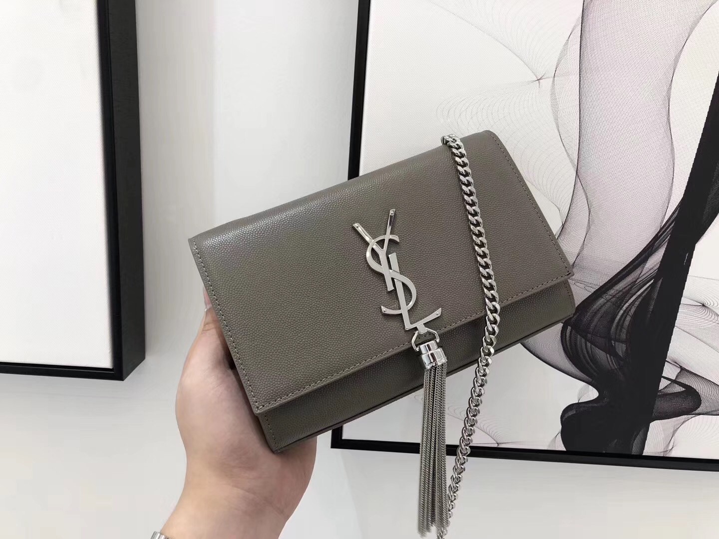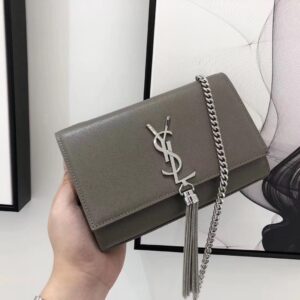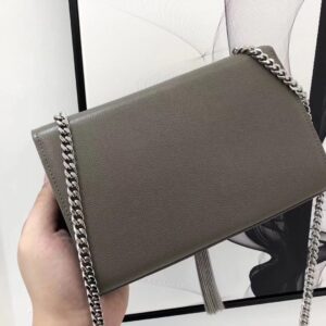 Saint Laurent Small Kate Tassel Bag In Grey Grained Leather
