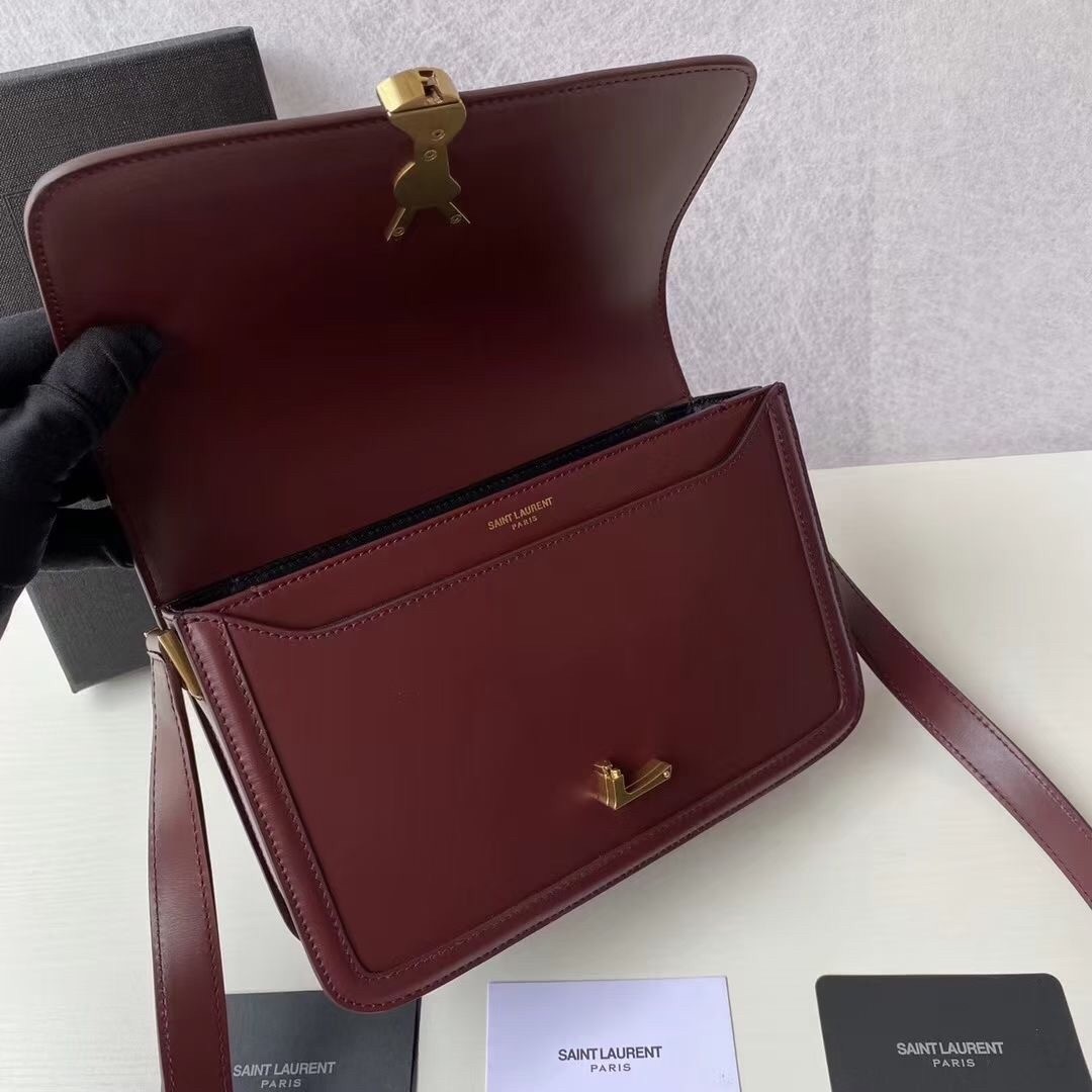 – Front flap and pivoting metal YSL closure
