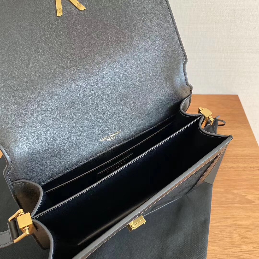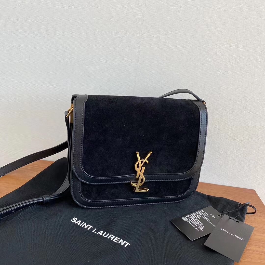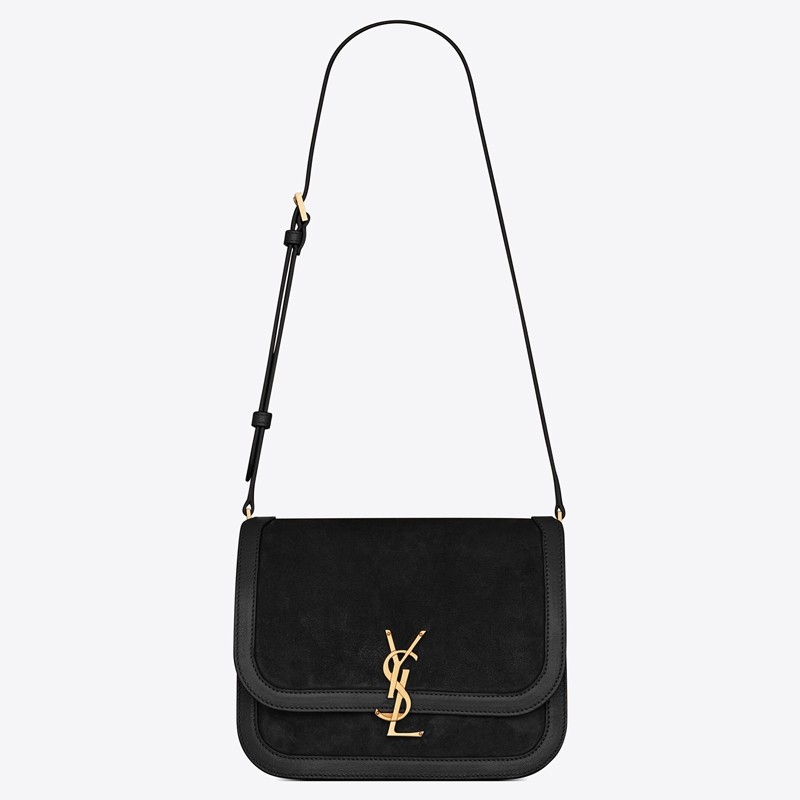 – Front flap and pivoting metal YSL closure