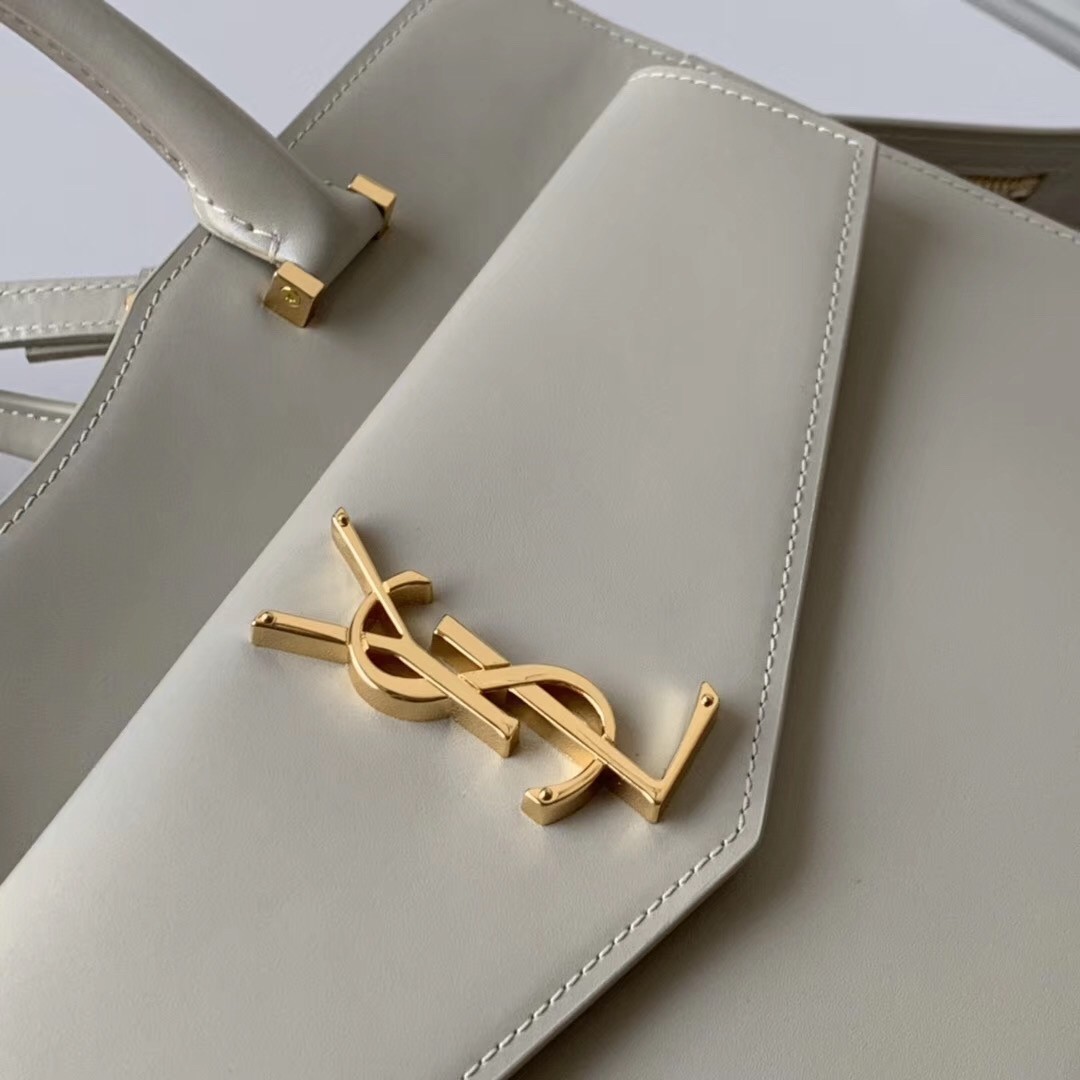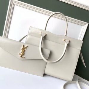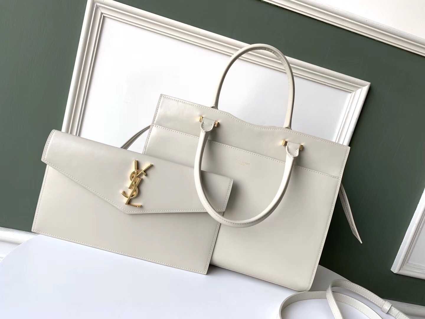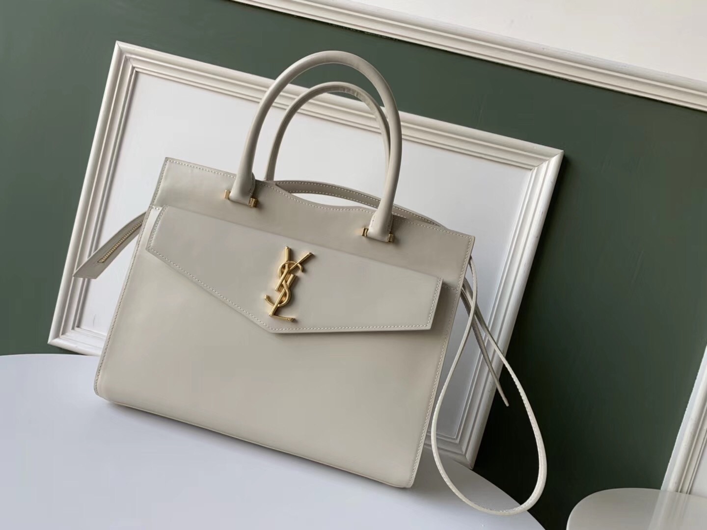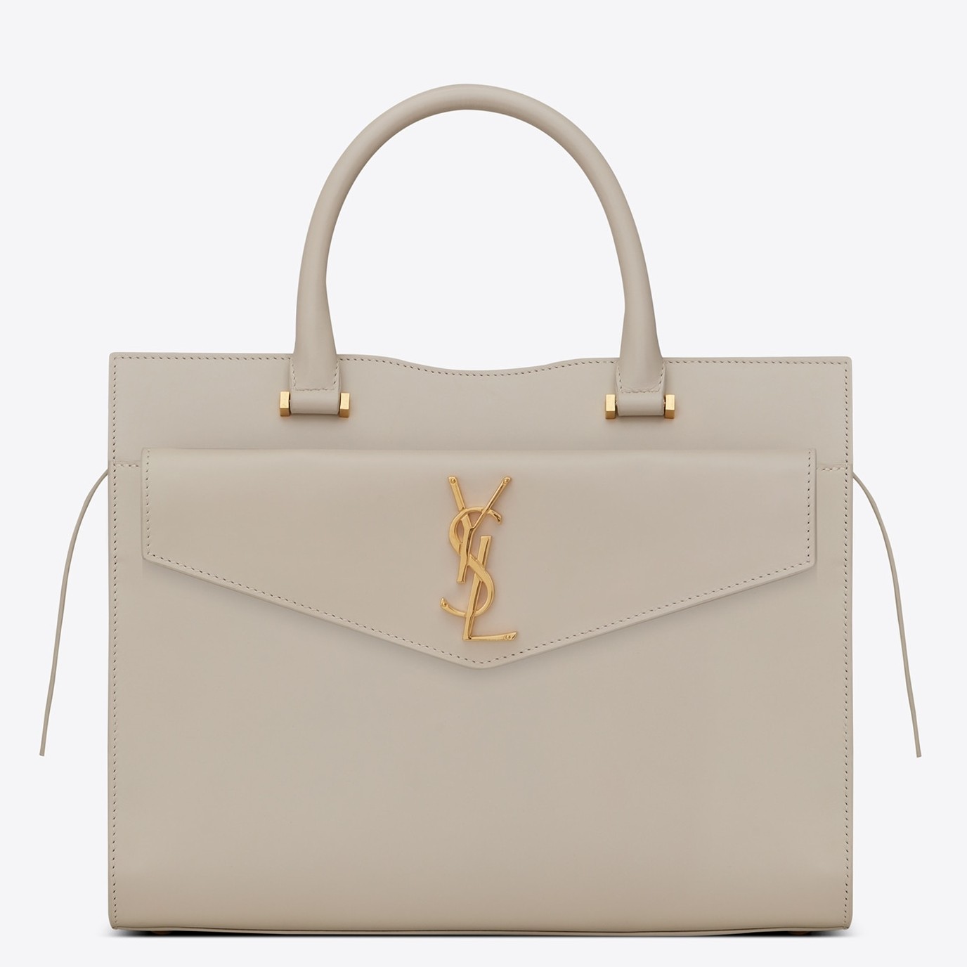 Saint Laurent Uptown Medium Tote In Blanc Calfskin