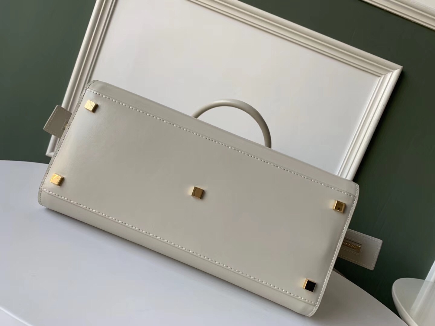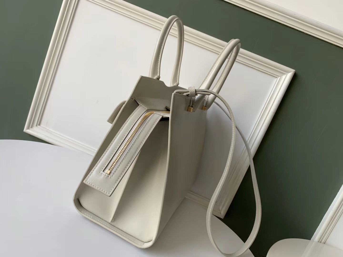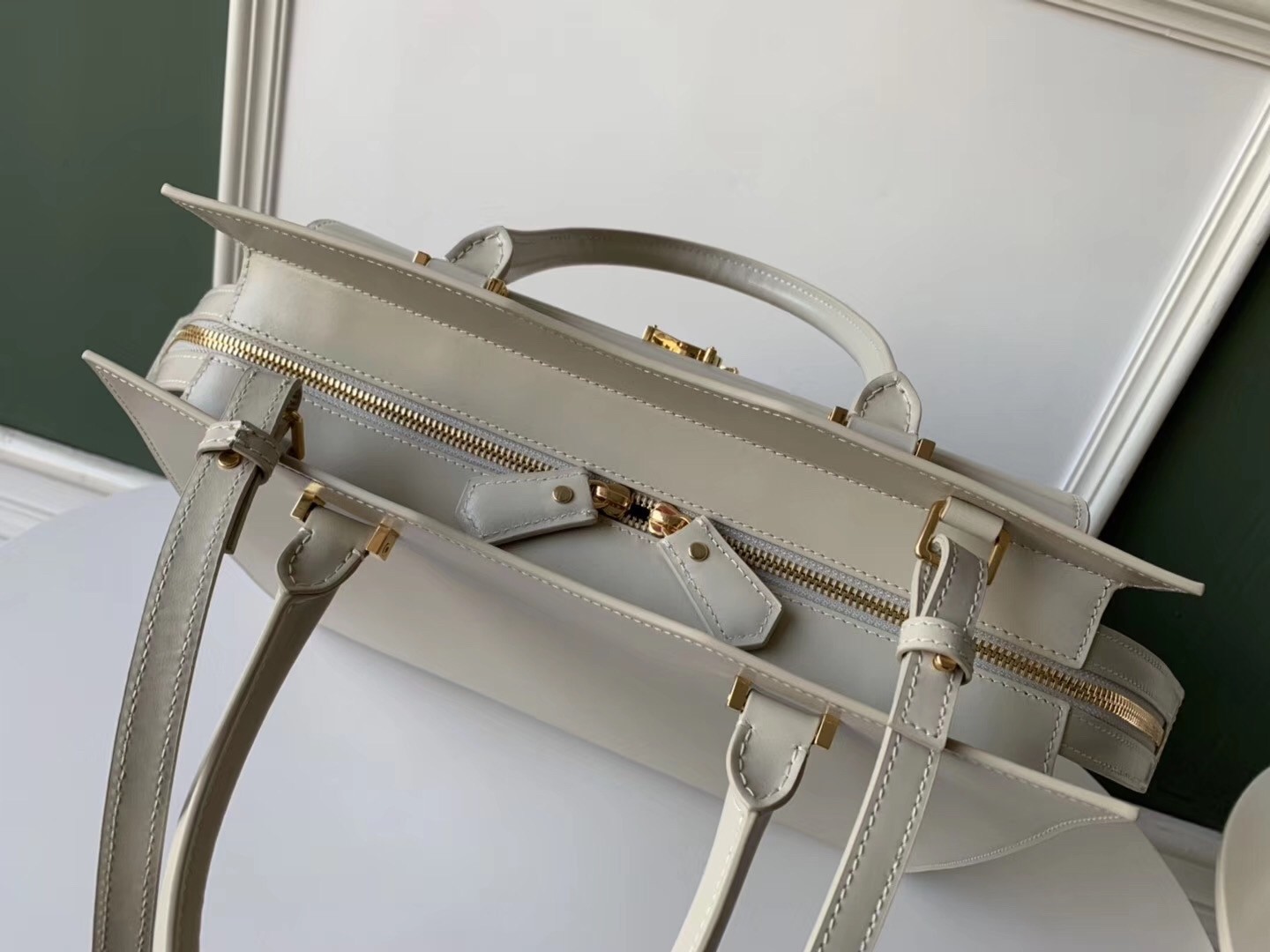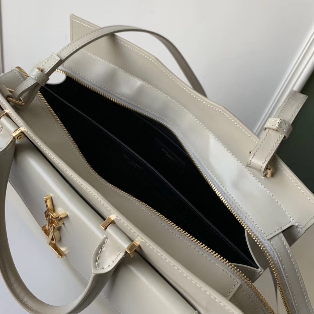 Saint Laurent Uptown Medium Tote In Blanc Calfskin