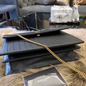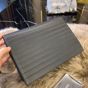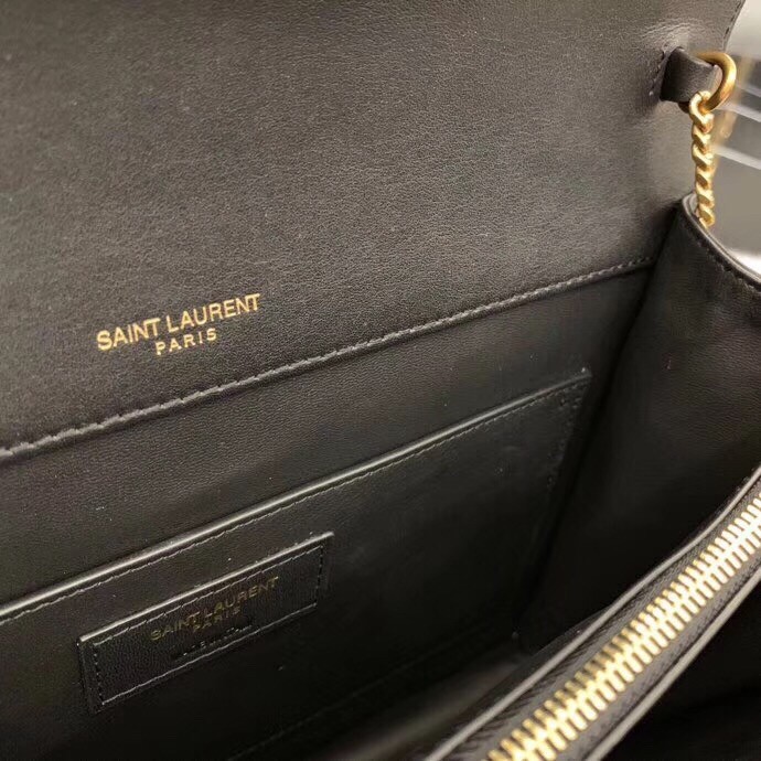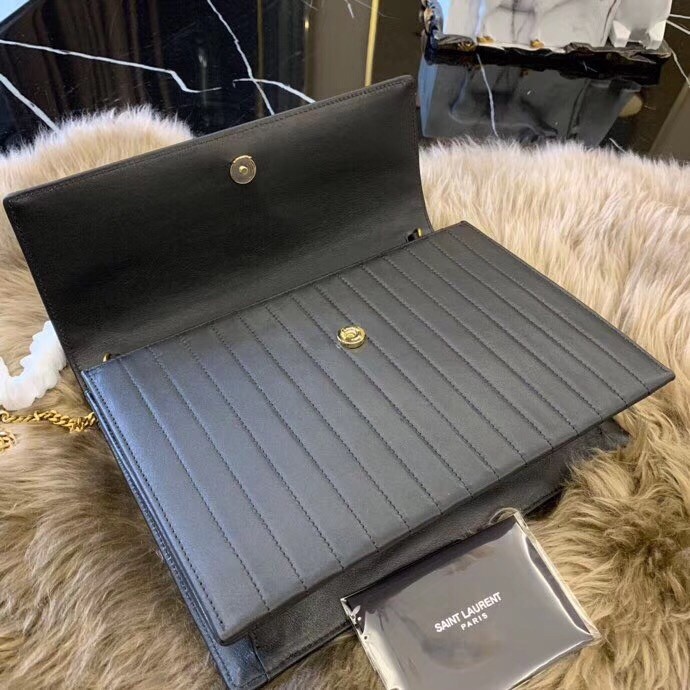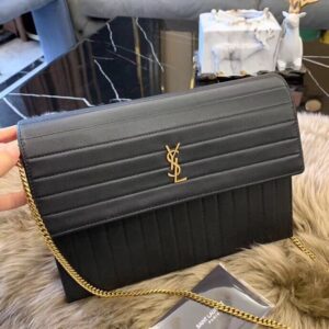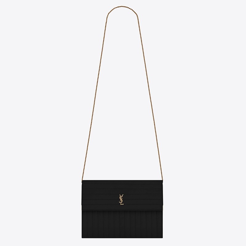 Saint Laurent Victoire Chain Bag In Black Crinkled Leather