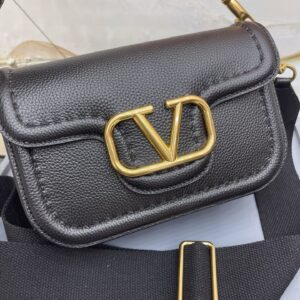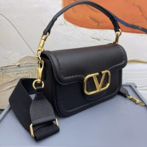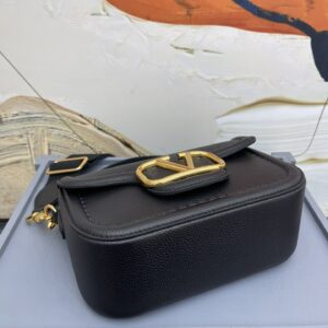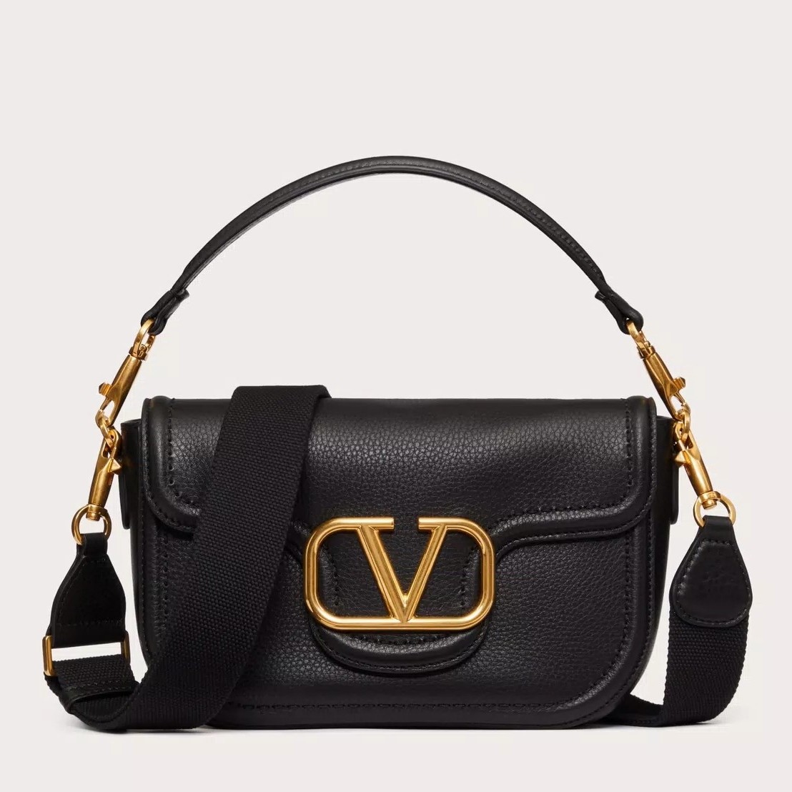 Valentino Alltime Shoulder Bag in Black Grained Leather