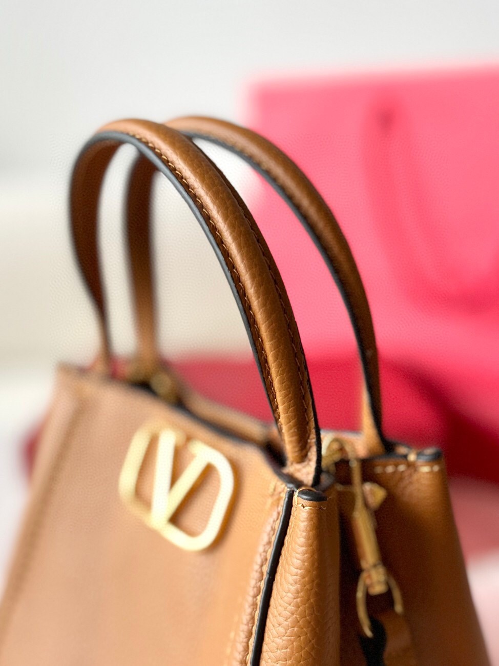 Valentino Alltime Small Bag in Brown Grained Calfskin