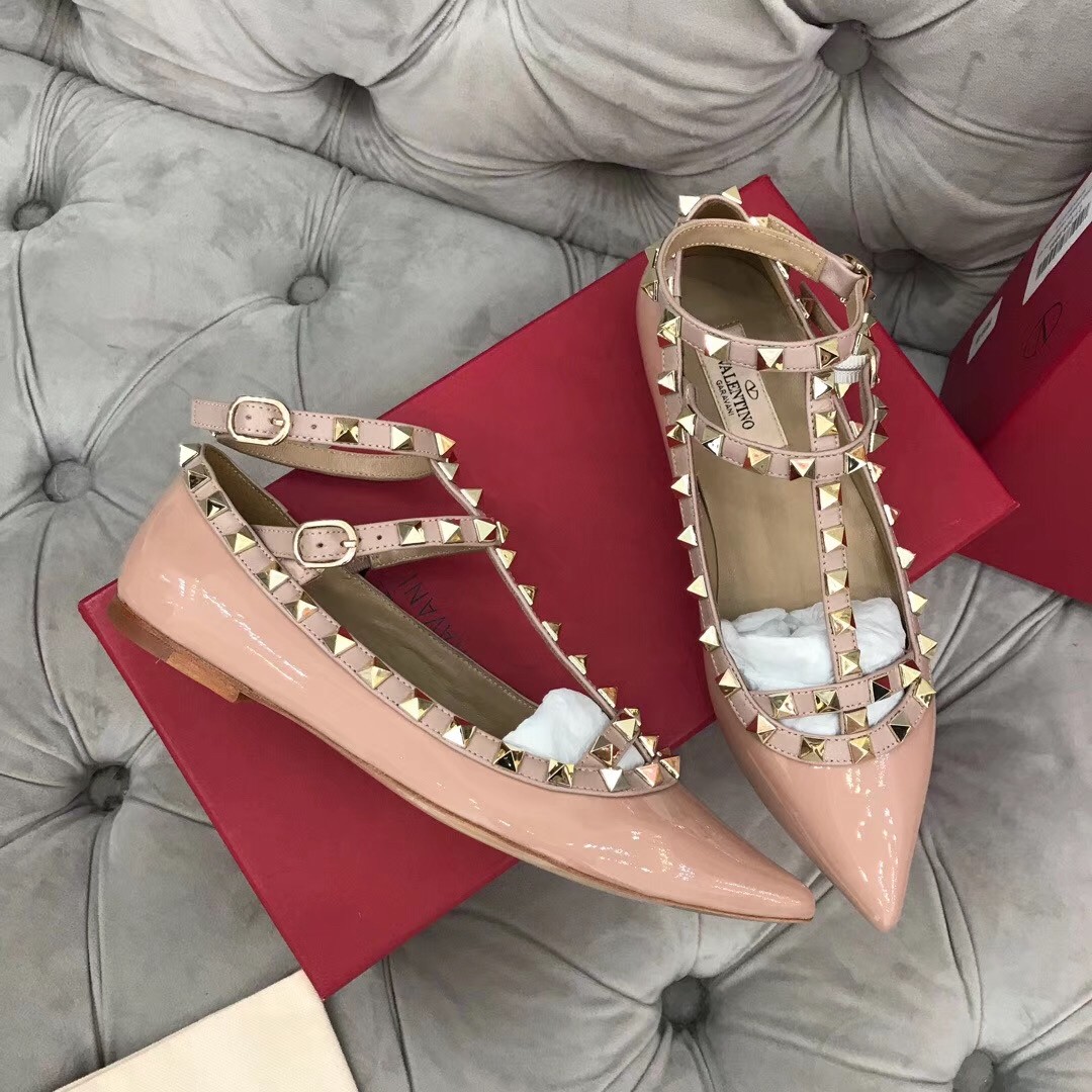 Valentino Caged Rockstud Ballet Flats In Powder Patent Leather
