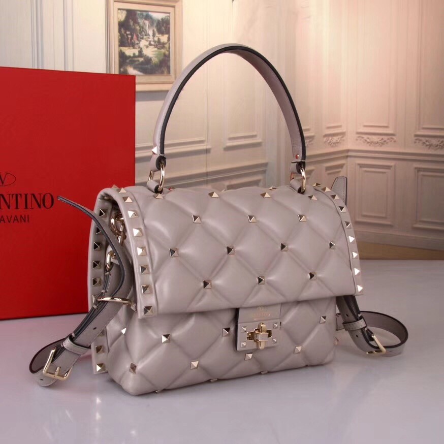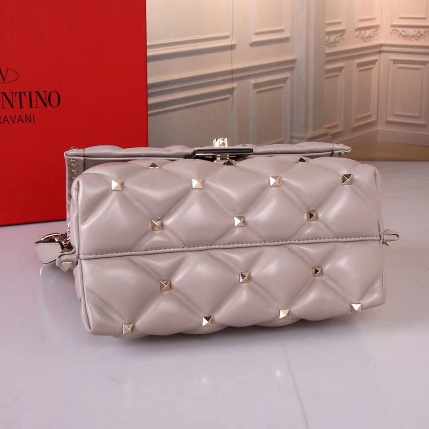 Valentino Light Grey Quilted Candystud Top Handle Bag