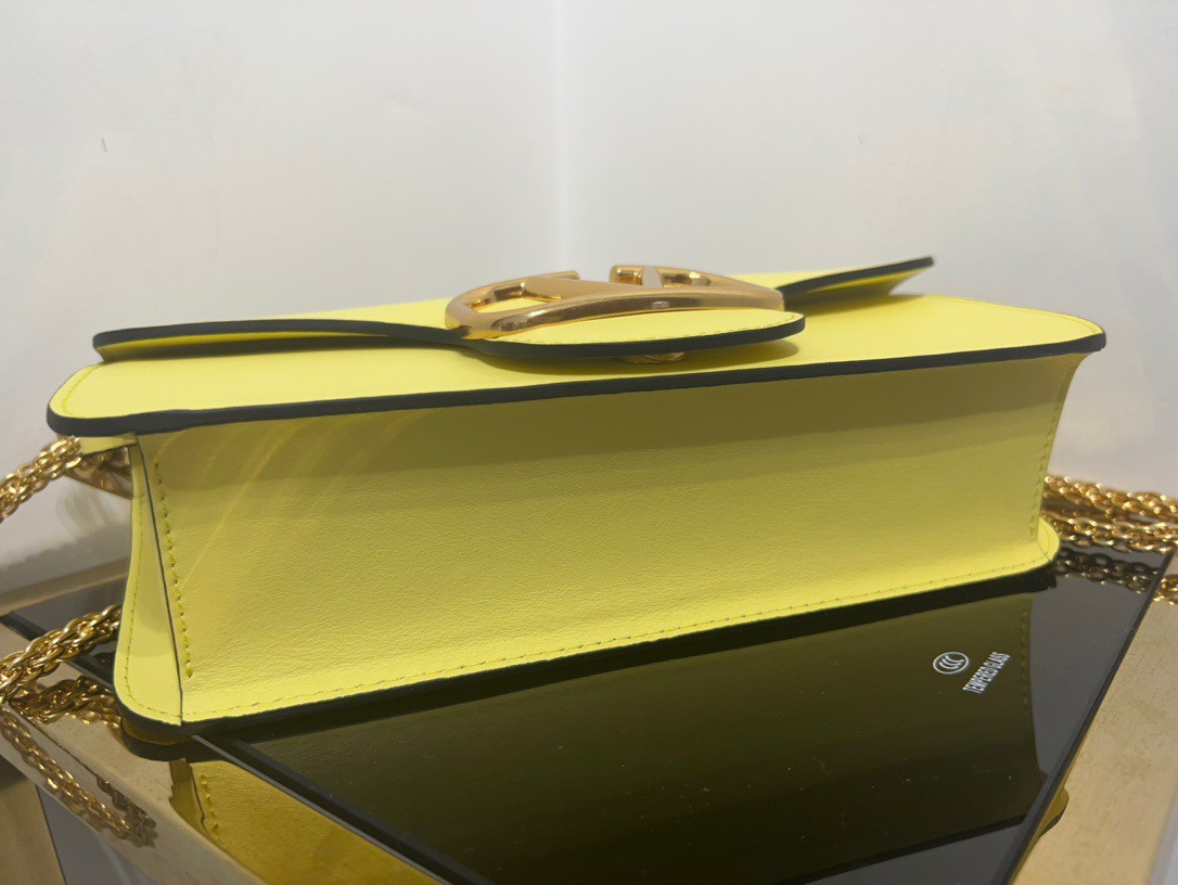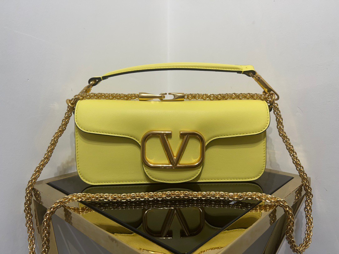 Valentino Loco Large Shoulder Bag In Yellow Calfskin