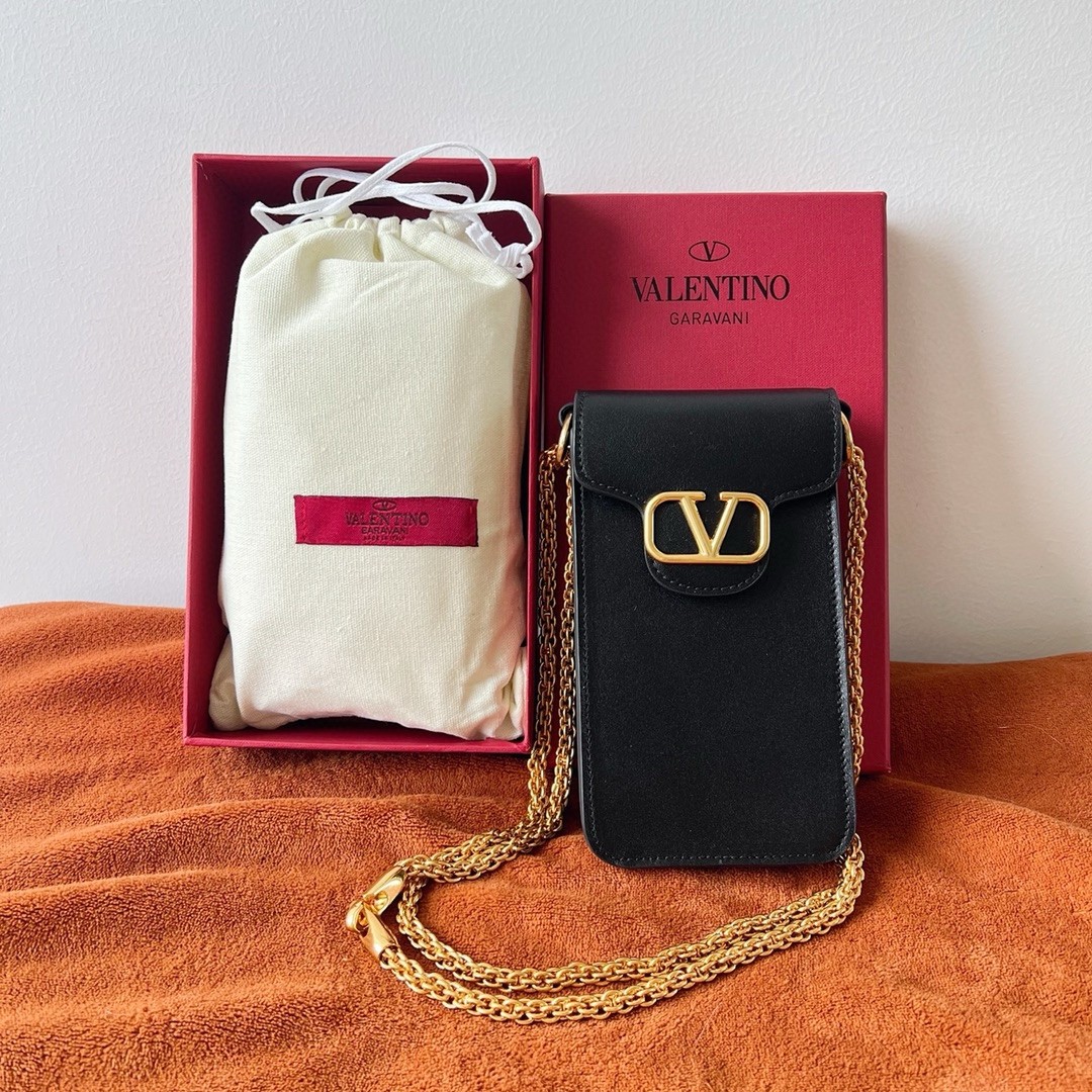Valentino Loco Phone Case in Black Leather with Chain